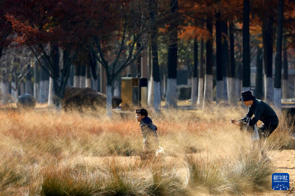 12月7日,市民在江苏省海安市上湖风景区游玩。