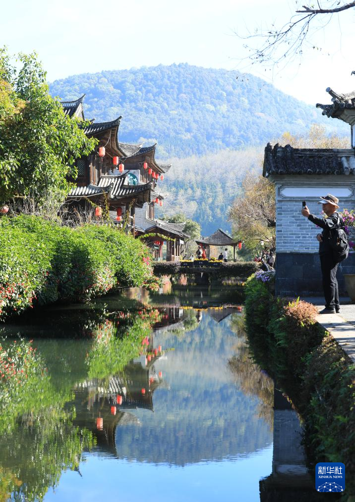 12月8日,游人在云南省腾冲市和顺镇拍照游玩。