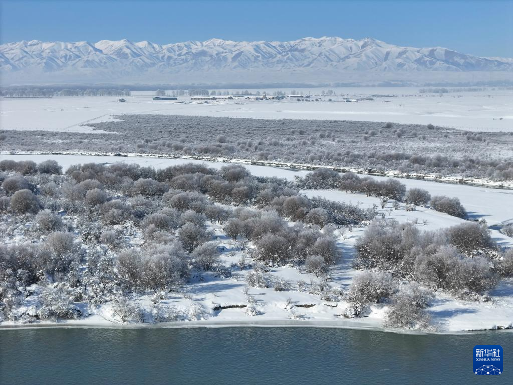 这是1月3日拍摄的新疆昭苏湿地公园一角(无人机照片)。