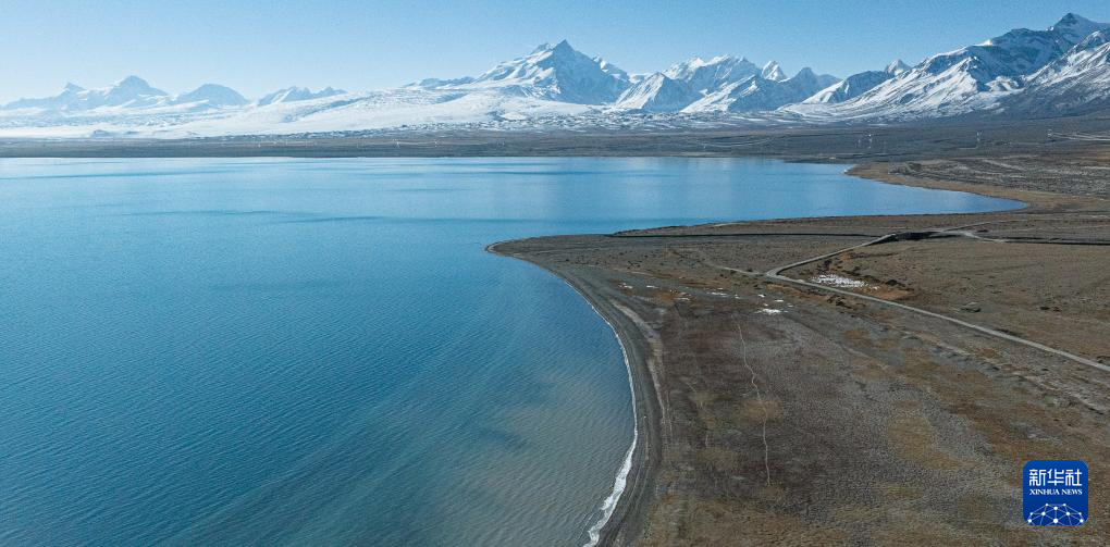 这是1月3日拍摄的佩枯错风光(无人机照片)。 佩枯错位于西藏日喀则市吉隆县与聂拉木县交界处,面积约300平方公里,湖面海拔4590米,是珠峰保护区内最大的内陆湖泊。 时值冬季,佩枯错的蔚蓝湖水与巍峨雪山相映成趣,构成一幅美丽的自然画卷。 新华社记者 丁增尼达 摄