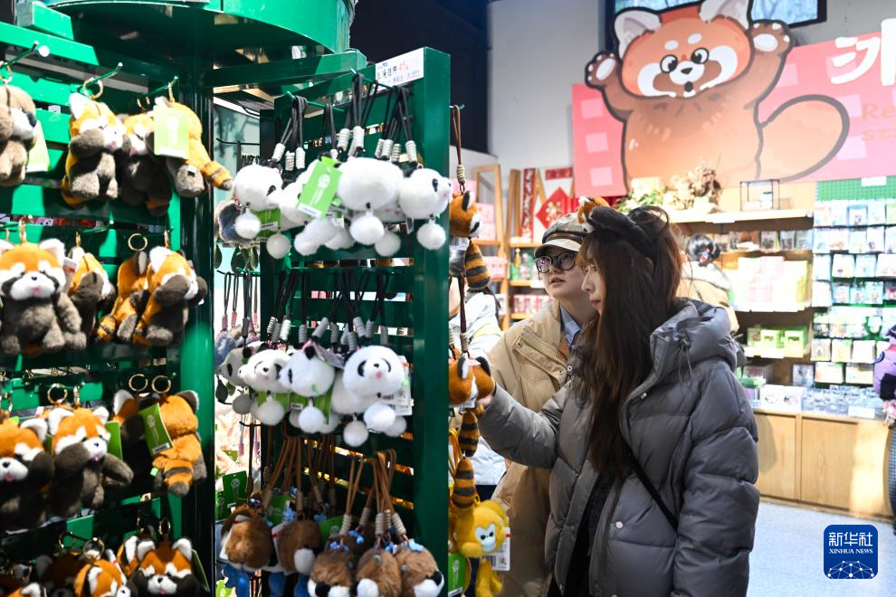 1月3日,游人在南京红山森林动物园选购文创产品。