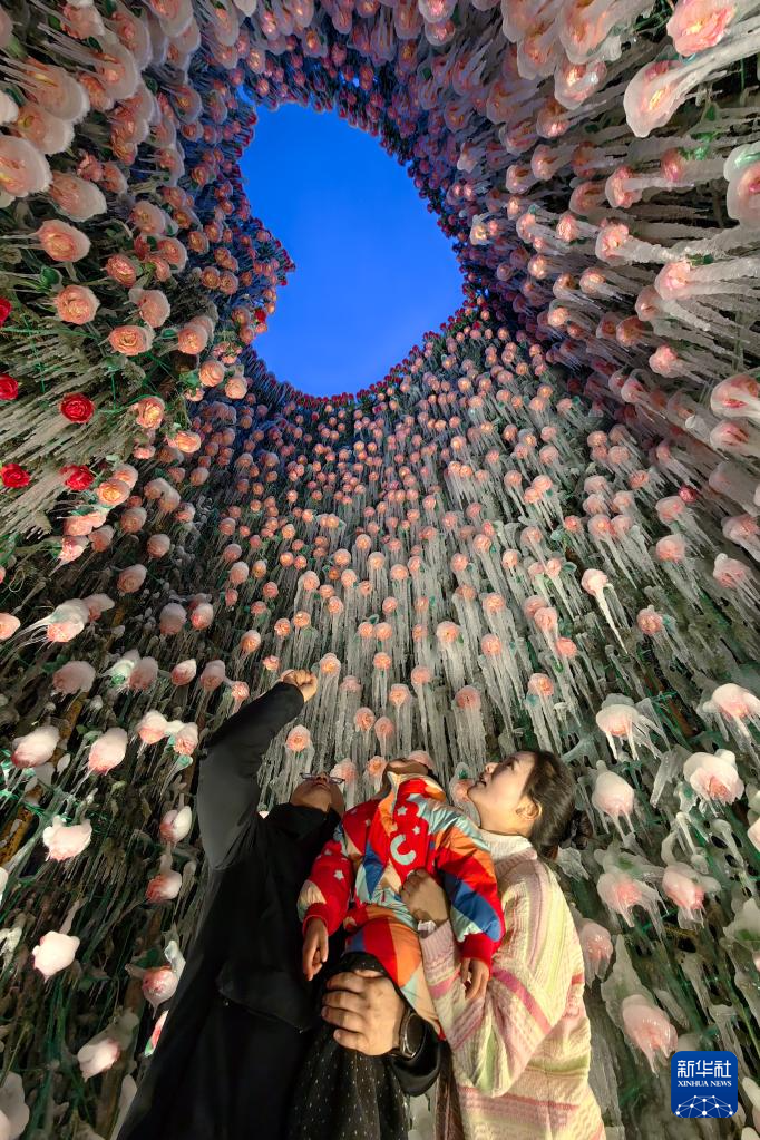 1月2日,人们在青海省西宁市湟源县丹噶尔古城观赏花灯。