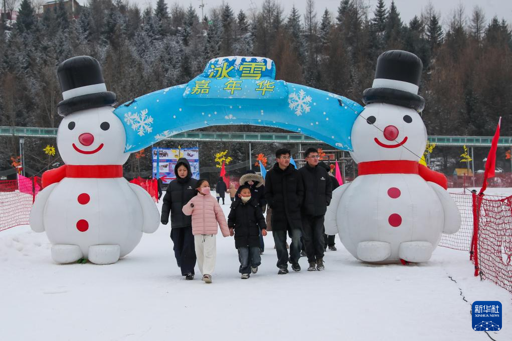 1月3日,人们在宁夏银川市贺兰县的稻渔空间冰雪乐园体验冰雪游乐项目。