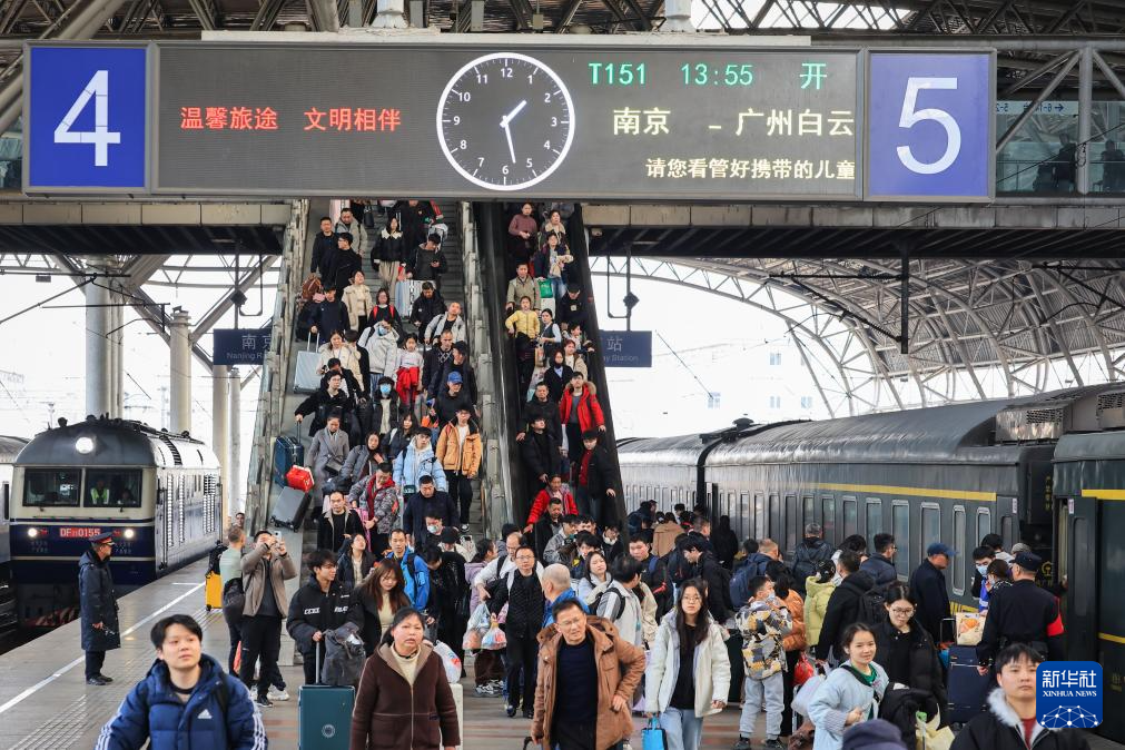 2月13日,旅客在南京火车站乘车出行。 各地春运渐入高峰,人们准备回家过年。 新华社发(苏阳摄)