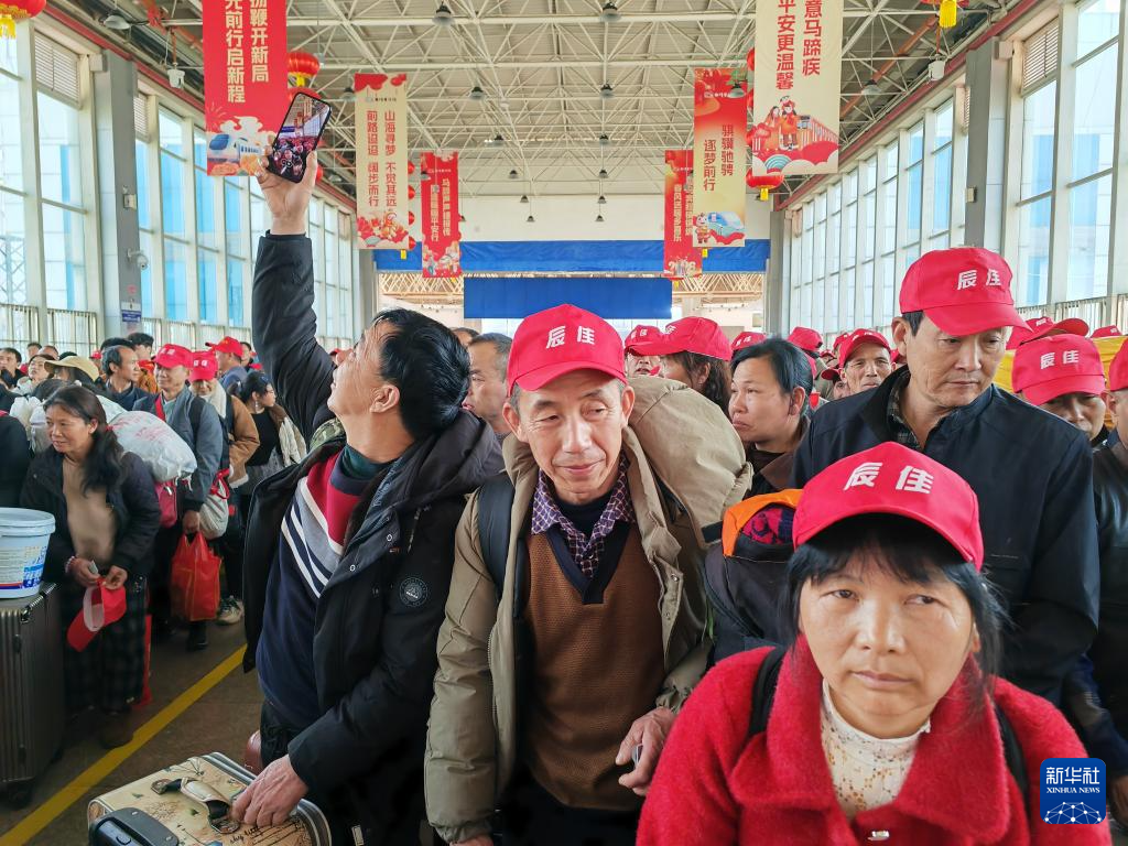2月24日,在云南省曲靖站,务工人员等待检票。 2月24日,云南铁路开行多趟务工列车,运送1000多名务工人员前往长三角和珠三角地区返岗务工。据了解,为满足春节假期结束后云南外出务工人员的出行需求,云南沾益、广南、丘北、富宁等地人社部门和铁路部门紧密合作,采取统一购买车票、开行务工列车、铁路部门开展暖心服务等方式,帮助外出务工人员返岗。云南铁路还将继续加大运力投入,陆续开行前往浙江、广东、上海等方向的多趟务工列车,为务工人员提供便捷高效的出行服务。 新华社记者 浦超 摄