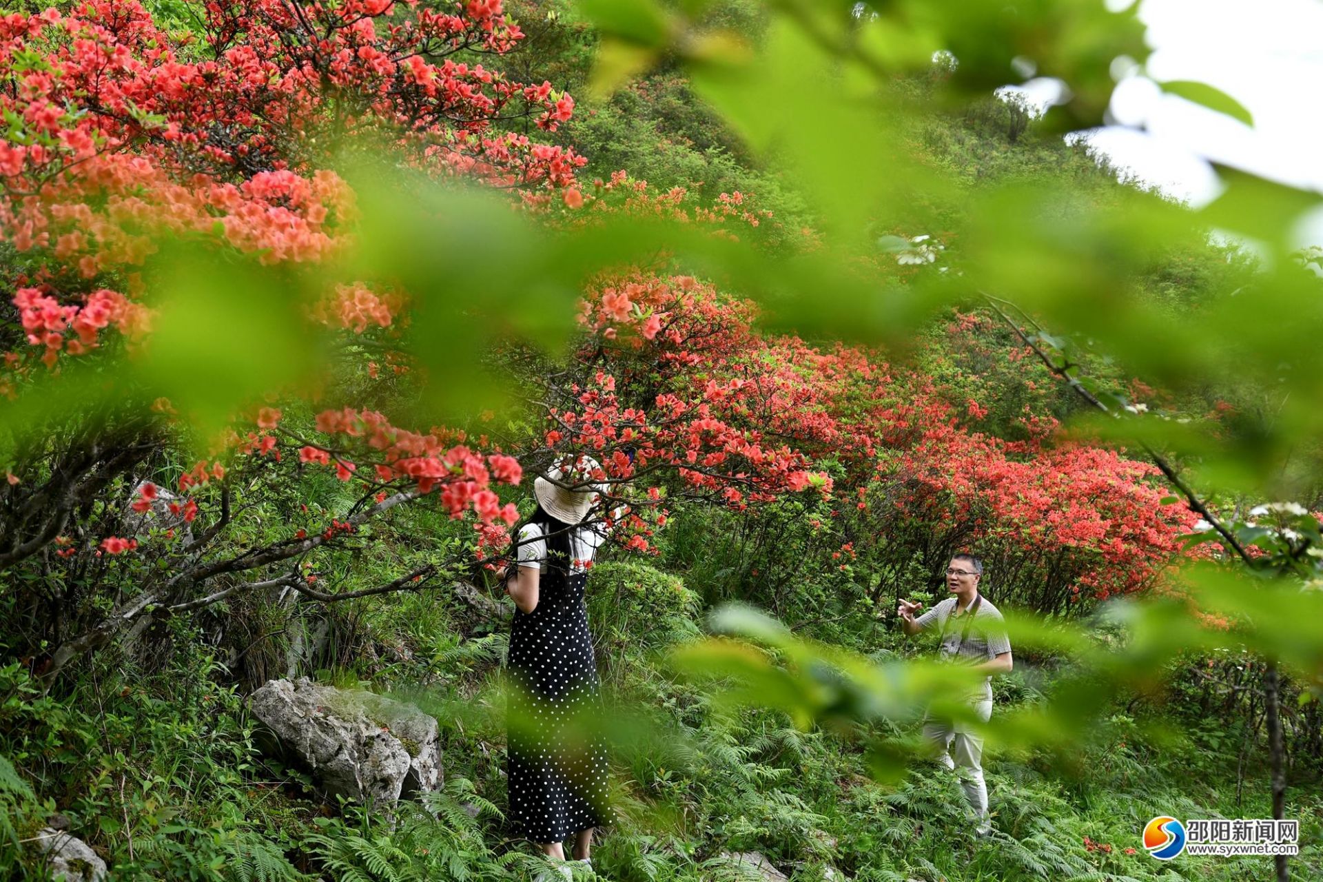 5月17日,游客在南山景区胡家坪一带的杜鹃花丛中游玩。