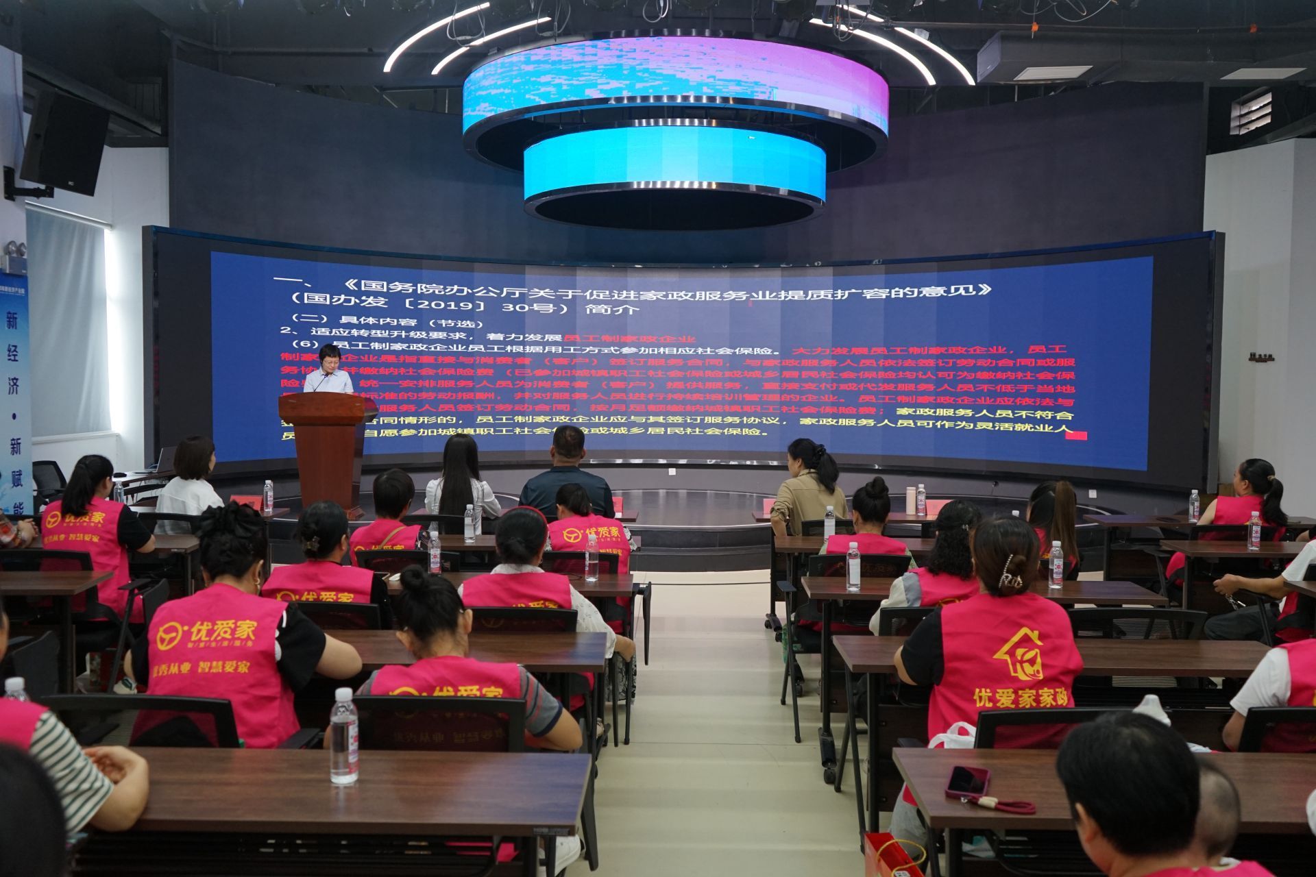 在湖南优爱家生活服务有限公司,慰问组为家政服务员发放月饼、大米等暖“新”礼包,鼓励大家弘扬劳模精神、劳动精神、工匠精神,在平凡岗位创造不凡价值。志愿者还围绕“构建和谐法律关系 共促家政服务发展”主题,通过案例讲解、条文解析等方式,提升家政从业者法律素养与自我保护意识。