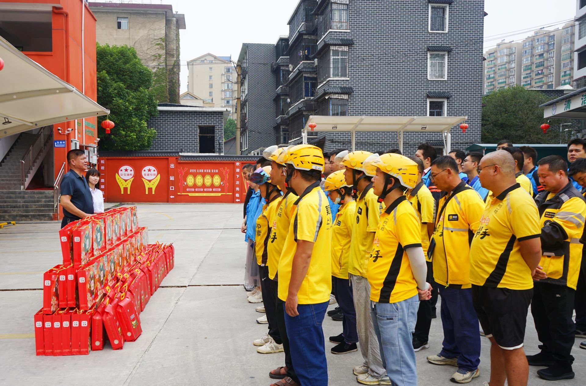 在邵阳工会驿站·邵阳市公交油料有限责任公司站。市总工会相关负责人为快递外卖小哥、货车司机送上中秋慰问品,感谢他们风雨无阻奔波一线、助力城市发展,同时叮嘱大家严守交通规则、注意出行安全,平安坚守岗位。