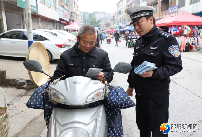 交通安全宣传进集市,隆回交警零距离向农村群众宣传交通安全知识,拉近了警民之间的距离,有效提高了农村群众的交通安全意识和法律常识,为确保农村道路交通安全畅通奠定了坚实的基础。