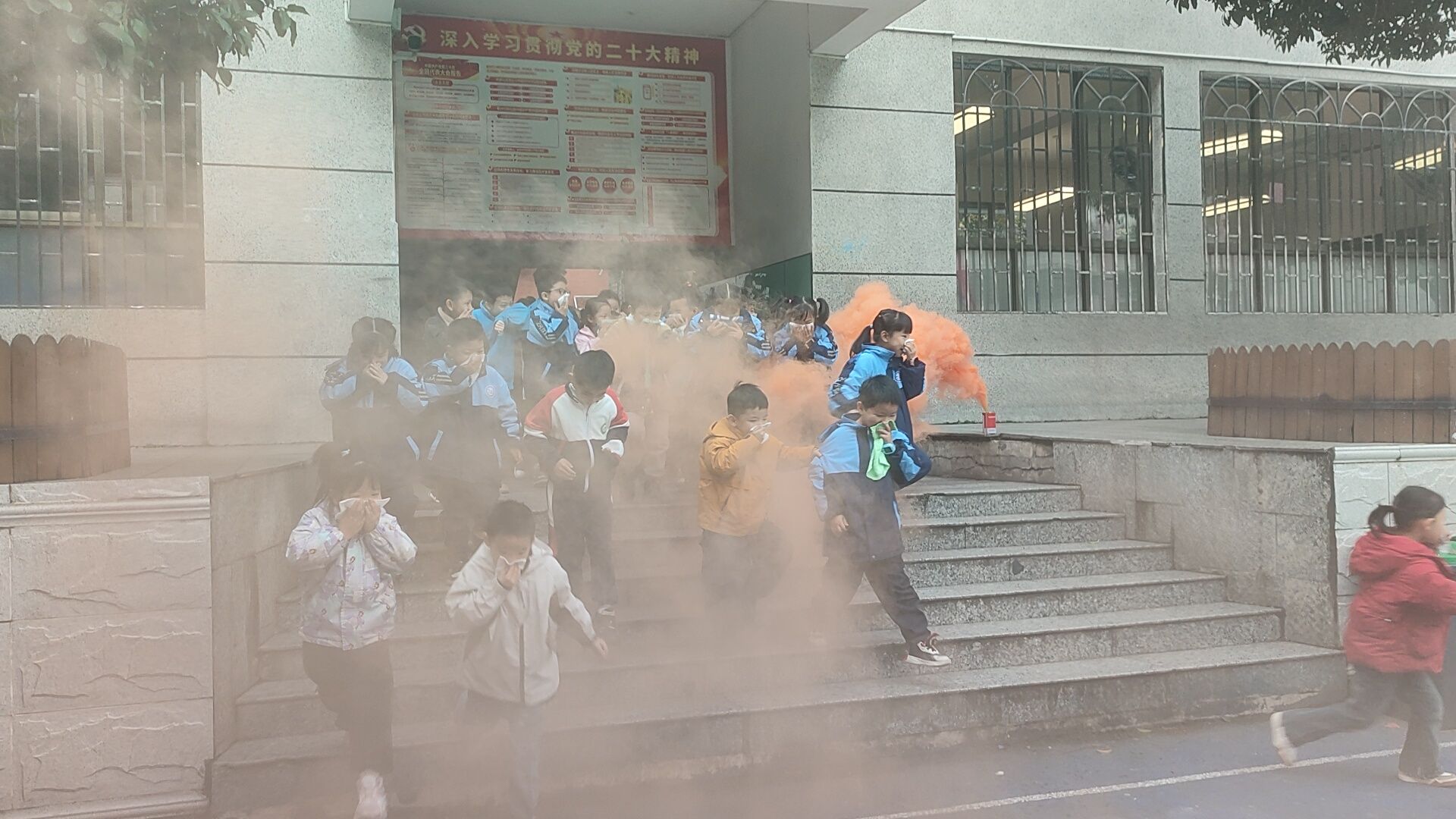 上午9时整,随着急促的消防警报声划破校园的宁静,演练正式开始。各班级师生反应迅速,在班主任的带领下,用湿毛巾紧紧捂住口鼻,弯腰低姿,沿着预定疏散路线,快速、有序地撤离到学校操场的安全集合区域。整个疏散过程紧张而不慌乱,仅用时2分钟49秒,全体师生便全部安全集结,充分展现了良好的应急素养和组织纪律性。