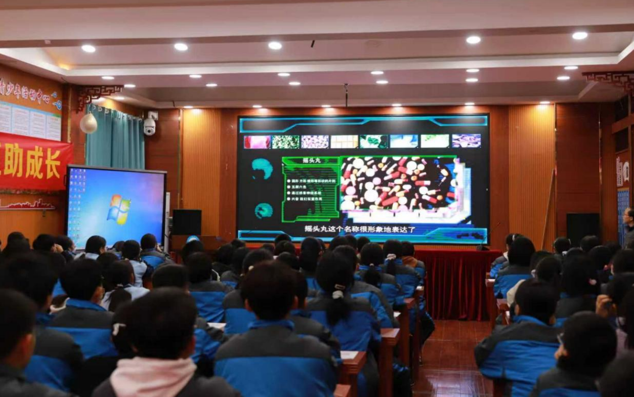 12月5日下午,该校禁毒宣传教育系列活动正式启动。活动以观看禁毒教育片为核心环节,初一年级两个班级的学生代表现场参与,其余学生通过教室直播同步收看。影片通过真实案例还原、深度危害剖析,直观展现了毒品对个人健康的摧毁、对家庭幸福的破坏以及对社会稳定的冲击,触目惊心的画面与发人深省的解读,给全体师生带来强烈的视觉冲击与心灵震撼,让“珍爱生命、远离毒品”的理念深入人心。