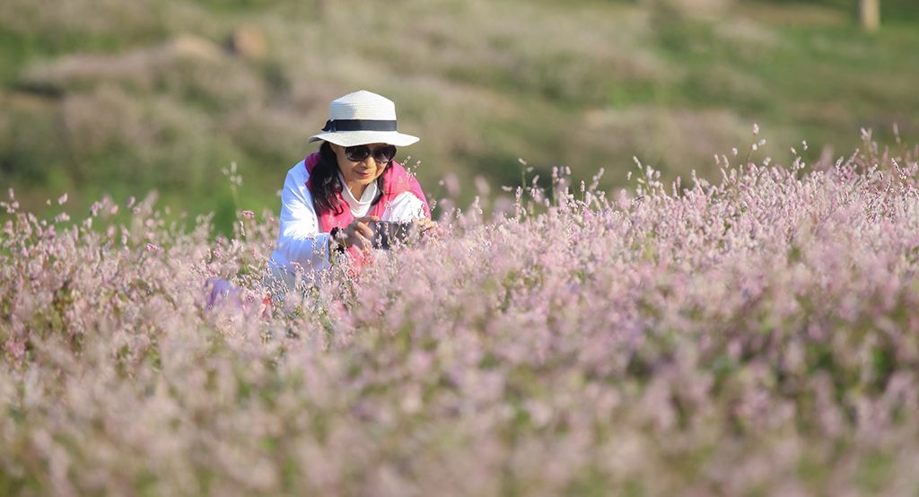 粉色花海如烟似雾、如梦如幻,仿佛为这里铺上了一块粉色地毯,为邵阳增添了一抹灵动色彩。微风轻拂,花朵微微摇曳,在蓝天白云的映衬下,恰似一幅美丽画卷,众多市民被这迷人美景吸引,纷纷前来打卡。