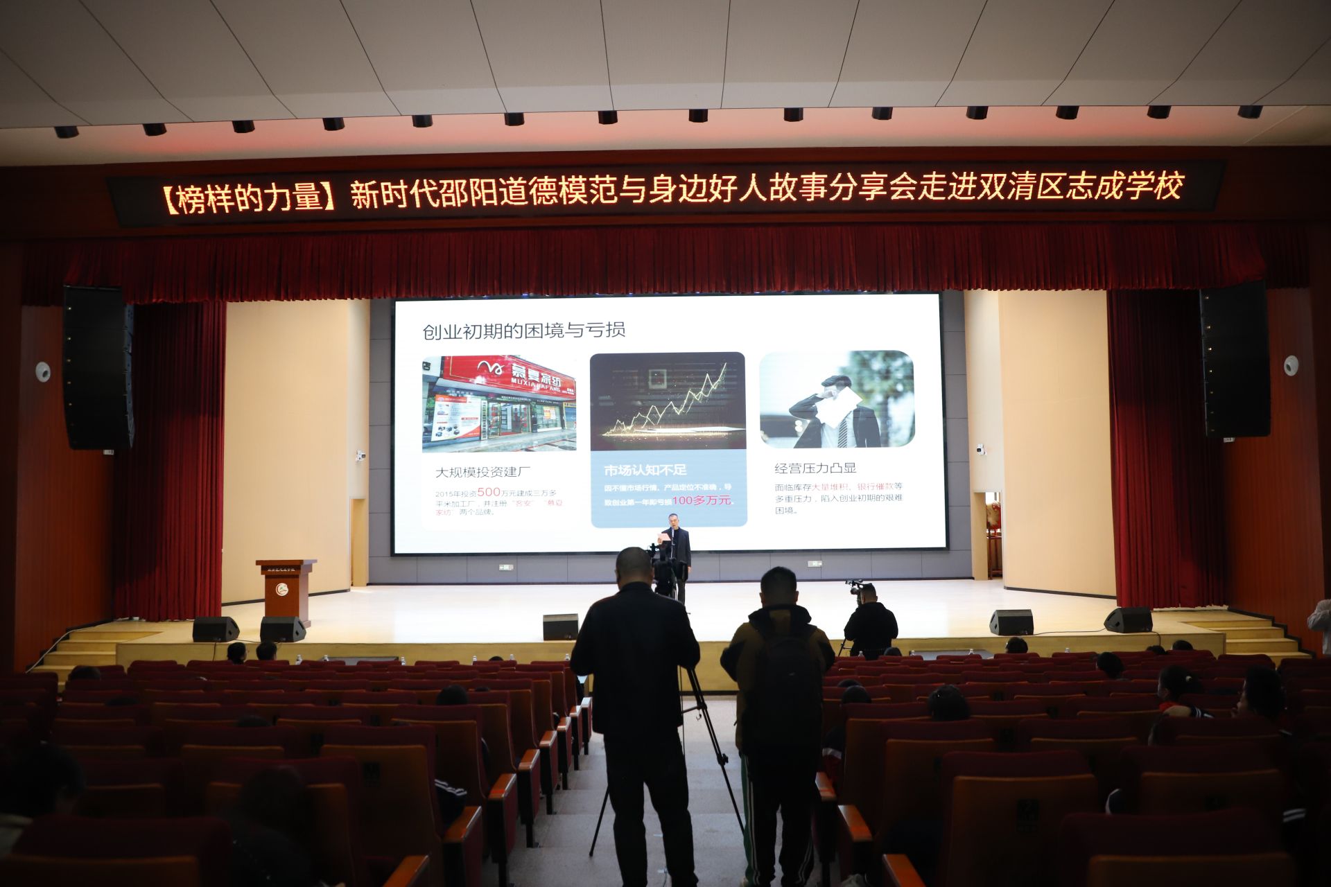 从身处逆境受乡邻帮助,到创业成功回报家乡、致力社会公益,“中国好人”“湖南省自强模范”“邵阳市助人为乐道德模范”刘红辉用质朴的语言、真挚的情感,诠释了平凡人如何在点滴行动中践行道德准则,让学生们真切感受到身边榜样的力量。刘红辉鼓励大家勇于面对各种挑战与困难,用自己的正能量去影响身边的人,多做对社会有意义、有价值的事。