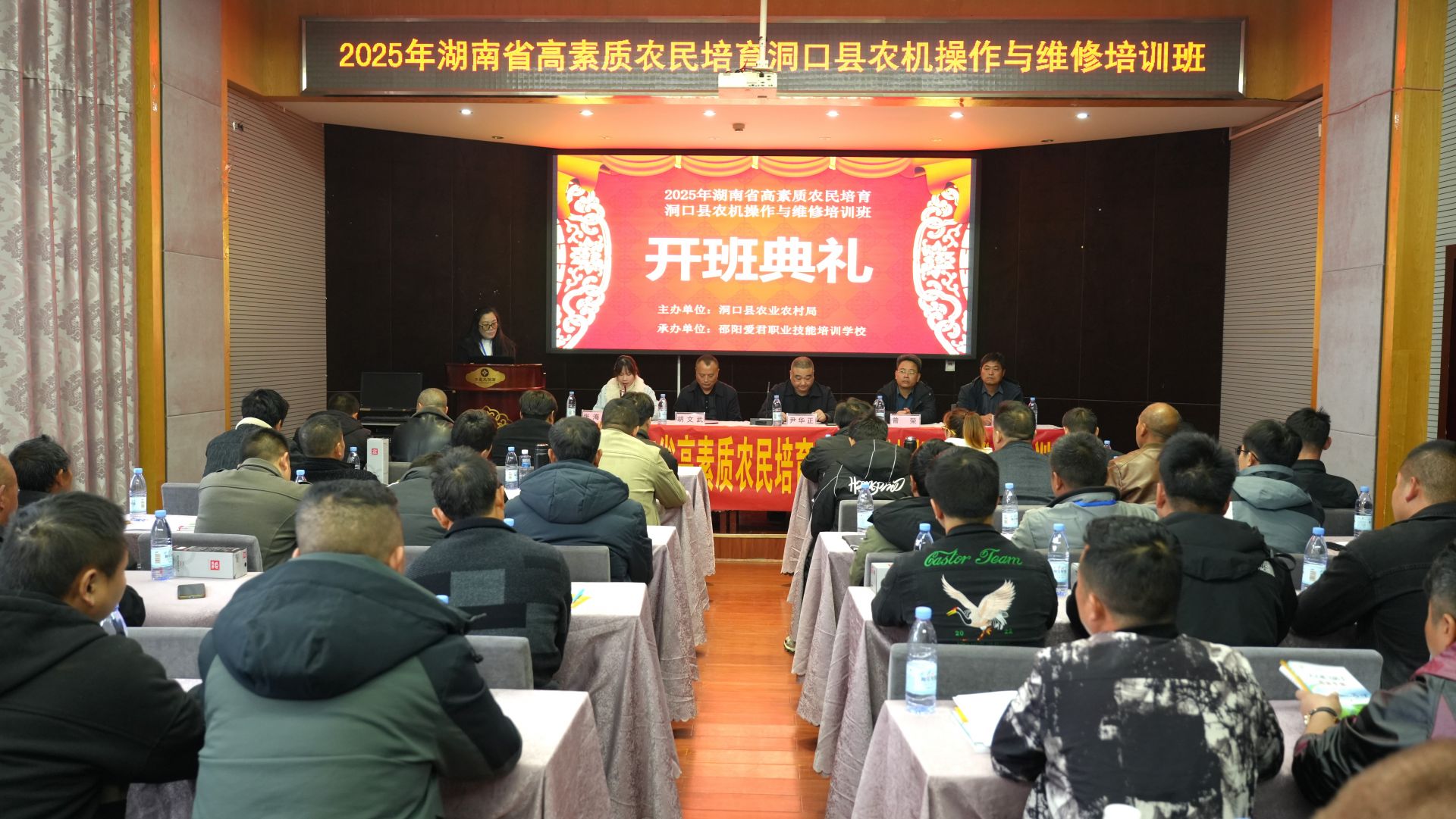 邵阳新闻网12月2日讯(记者 王紫红 李定康)12月2日,由洞口县农业农村局主办、邵阳市爱君职业技能培训学校承办的“2025年湖南高素质农民培育洞口县农机操作与维修培训班”正式开班。来自全县各乡镇的50余名规模种植大户、专业农机手、农机大户及农机作业服务组织带头人参加培训,将共同开启为期7天的技能提升之旅。