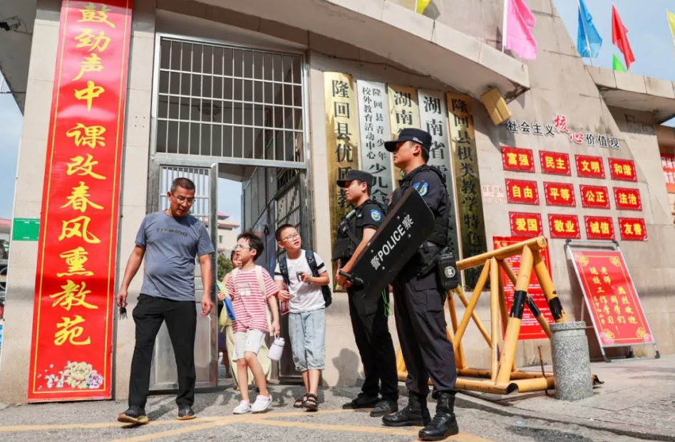 9月1日起,隆回县公安局全面启动“护学岗”机制,辖区派出所、巡特警大队联动发力。通过“步巡+车巡”立体巡防模式,在校园周边及重点区域加大巡逻频次,确保“见警察、见警车、见警灯”;同时动态优化执勤部署与应急响应机制,及时排查化解矛盾纠纷、快速处置突发情况,让学生安心上学、家长放心等候。