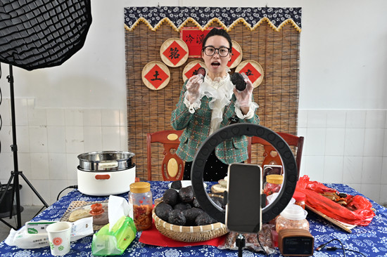 在直播间,猪血丸子、腊肉、腊鸭、香肠等腊制品,糍粑、红薯干、笋皮、油豆腐等特色农产品琳琅满目。“我们的公益直播间都是免费向村民开放的,开通直播带货,既能拓宽农民增收渠道,又能把当地更多的特色农产品推介出去,这就是我的初衷。”主播史筠研高兴地说道。