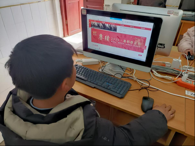 活动期间,同学们在老师的指导下登录“中华英烈网”的“2025·清明祭英烈”专题页面。通过“观看宣传片”“敬献花篮”“祭奠英烈”“各地动态”“走进设施”等模块,深入学习英雄事迹。一朵朵“永不凋零”的花,既承载着对先烈的无限敬仰,也绽放出少年赓续红色血脉的坚定信仰。