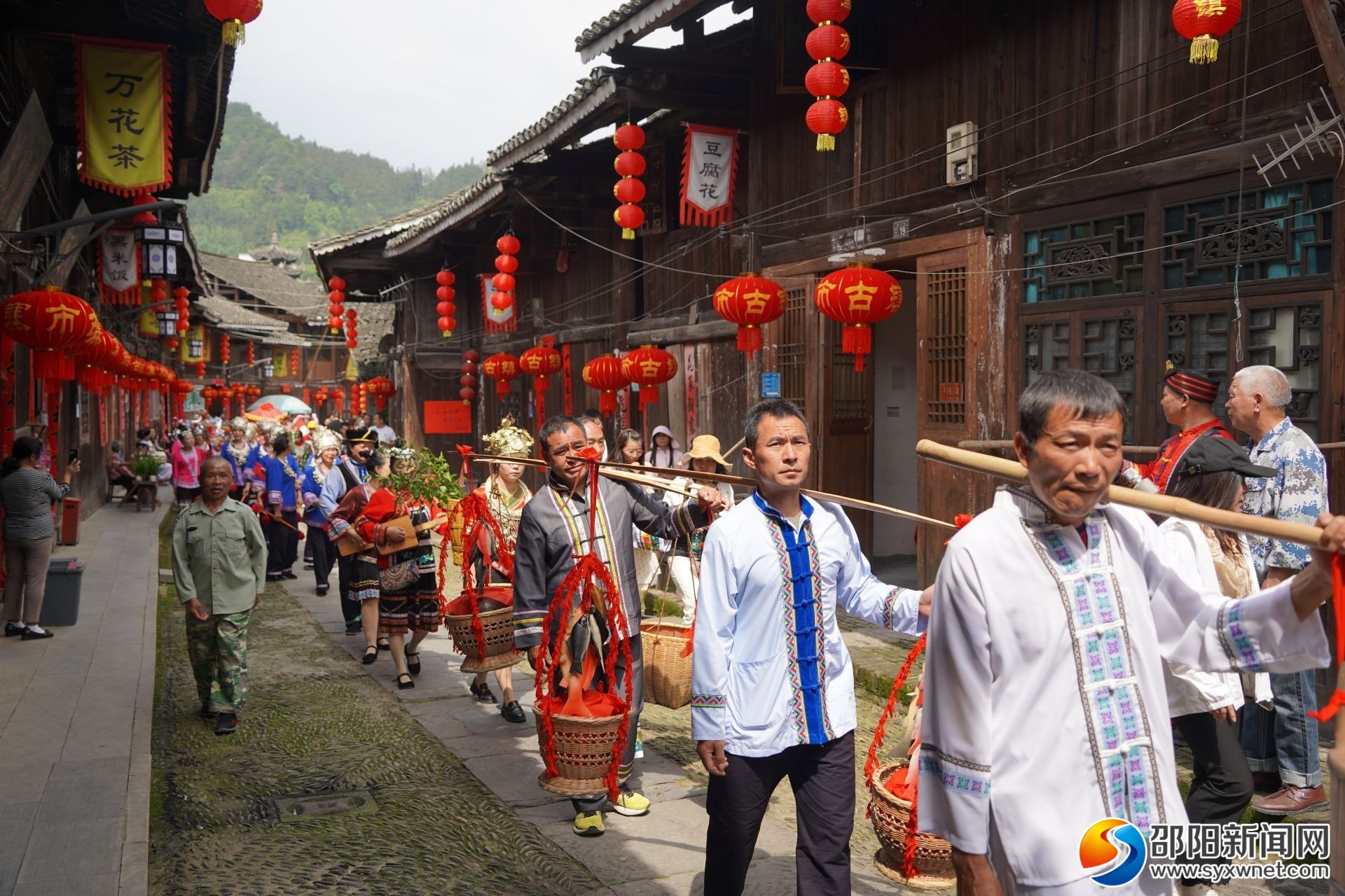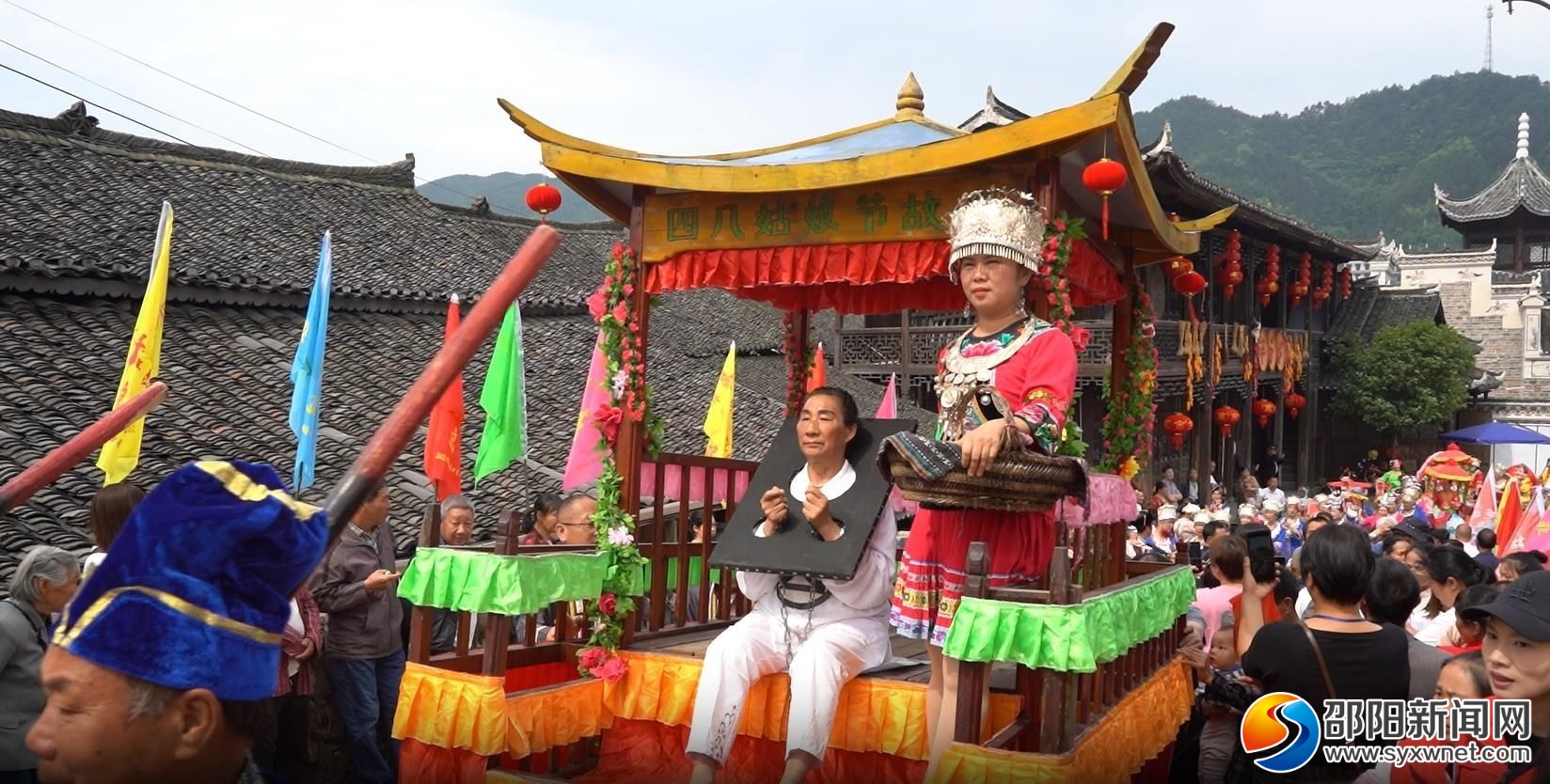 邵阳新闻网5月16日讯(通讯员 唐芳艳 邓钊)锣鼓喧天,芦笙阵阵,“故事”被人抬着走街串巷……5月15日,农历四月初八,邵阳市绥宁县寨市古镇上演传统民俗文化活动——“抬故事”,通过绥宁苗族四月八姑娘节故事展示与讲解,传承四月八姑娘节民俗文化,吸引了一大批游客驻足观赏,现场人声鼎沸、盛况空前。