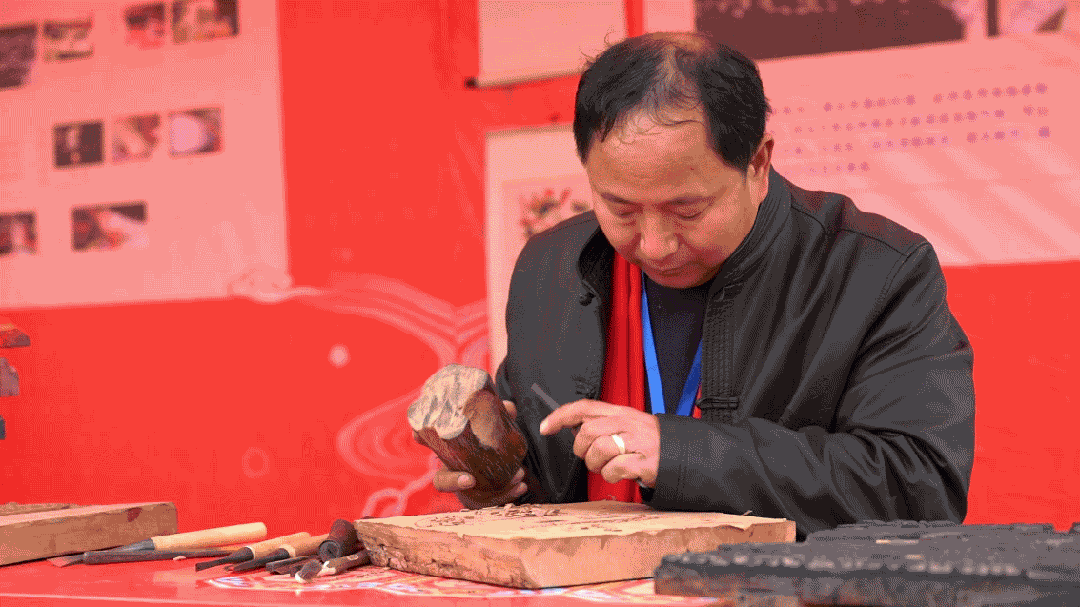 “村晚”搭台,现场还能逛非遗集市、购特色年货。走进非遗集市,滩头年画、花瑶挑花等非遗项目令人目不暇接。一旁摆放的滩头年画成品、文创作品也吸引了不少观众选购。在“年货一条街”,山界红糖、金银花、腊肉、猪血丸子、高平水酒、“三辣”等年货琳琅满目,让不少本地群众及外地游客兴致勃勃,边吃边逛,不时驻足询问购买。