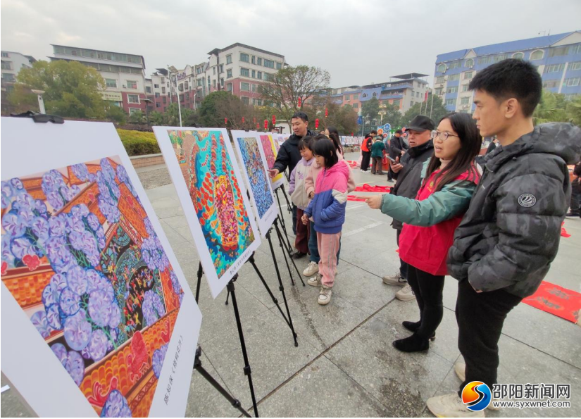 同时,活动现场还设置了年画展览区,50余幅题材丰富的年画整齐排列,既有寓意吉祥如意的传统元素,又有描绘民俗风情的生动画面,还有展现时代风貌的创新之作,不时引得市民群众驻足欣赏。志愿者们穿梭在人群中,热情地为大家免费发放年历,年历上印制着吉祥精美的图案,为即将到来的春节增添喜庆。