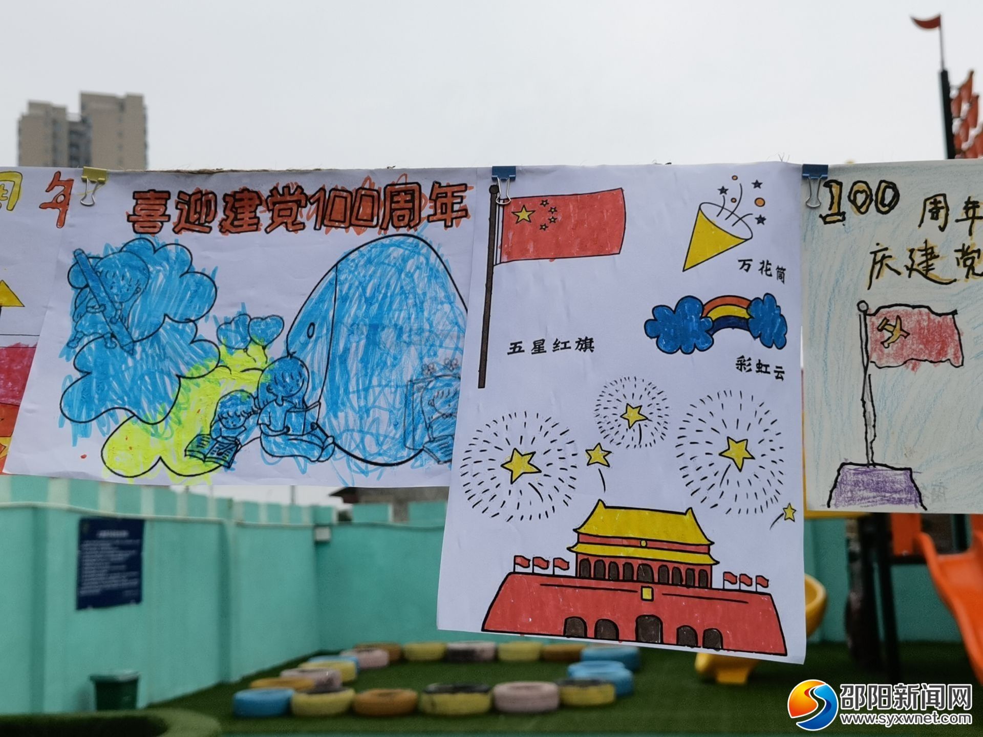邵阳新闻网7月1日讯(记者 周超)7月1日,在北塔区美德国际幼儿园,100幅充满童真、童趣和爱党、爱国情怀的作品让整个校园更显得生机勃勃。