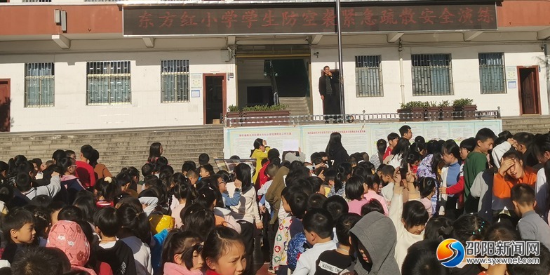 隆回县东方红小学举行防空疏散演练活动