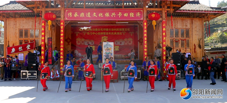 城步白毛坪镇卡田村举行庆鼓堂文化传习中心挂牌暨苗年庆典演出