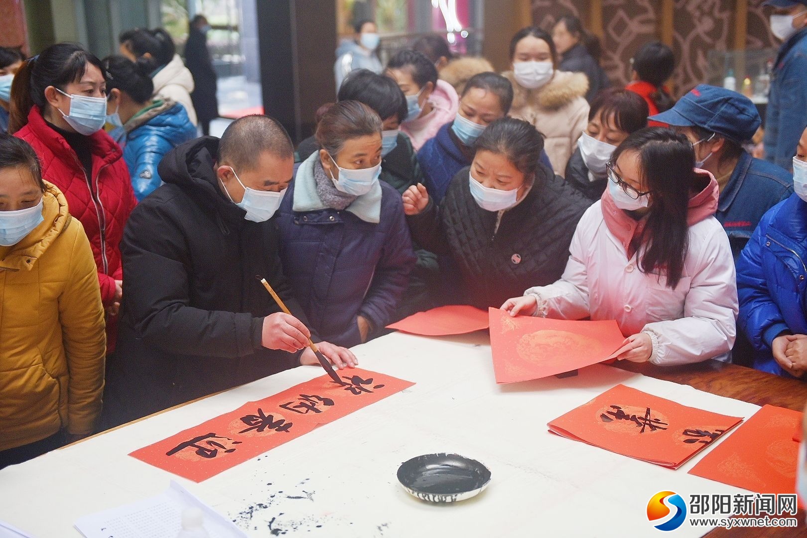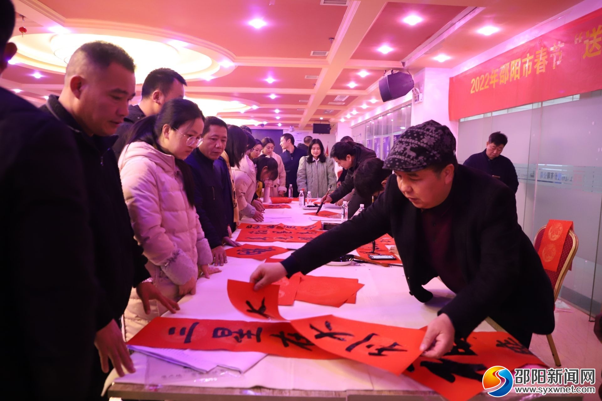 邵阳新闻网1月26日讯(记者 刘其洁)在虎年春节即将到来之际,1月26日,由邵阳市总工会、邵阳市文联联合开展的2022年邵阳市“送万福 进万家”书法公益活动走进湘窖酒业。该活动自1月19日正式启动,目前已在市自来水公司、富士电梯、邵阳南方水泥、邵阳口味王、湘中制药、天闻新华印务等企事业和机关单位开展活动,邀请书法家为一线职工手写并赠送春联3500余副,营造了浓浓的年味,深受职工群众喜爱和好评。
