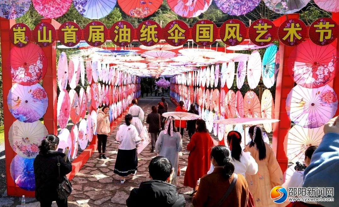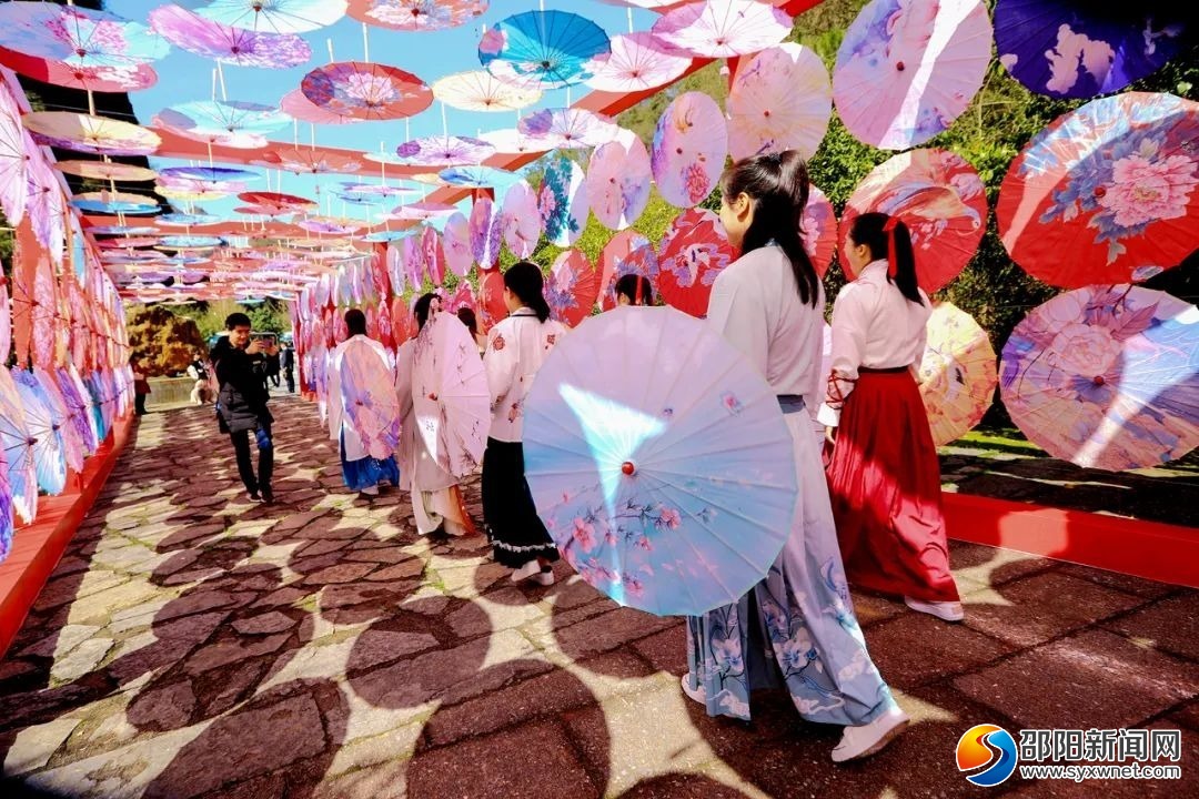 邵阳新闻网3月10日讯(通讯员 颜克明 蒋世民 黄远庆)3月7日,“浪漫崀山,最潮国风”新宁崀山首届油纸伞国风艺术节浪漫开启,唯美古风油纸伞长廊,形制优美、悦耳动听的风铃,寓意着平安幸福的许愿树,以及古色古香的吊脚楼等将春天的崀山装扮得格外浪漫。
