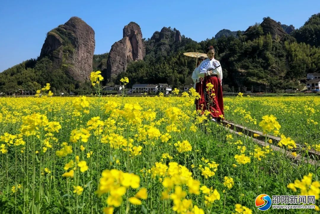 崀山的春天千山披绿,如碧如洗,田野金黄,山花灿烂,如诗如画,是开展踏青、春游、赏花闻香的最佳时节。此次活动,崀山景区在辣椒峰用520把各式花色的唯美油纸伞搭建了一条近50米的长廊,装扮了璀璨烂漫樱花树,在意境优美的遇仙巷修建了一座古色古香的吊脚楼,广大游客可以穿上汉服、旗袍,美美的拍照打卡,拍摄抖音,系上红绸带,挂上风铃,许下春天的第一个心愿等体验最潮的国风。