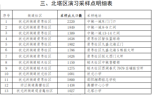 (三)北塔区:西湖北路以西,峎山路以北,北塔路以东、云山路以南。在此区域之外另北塔小学、状元小学、高撑小学,设采样点13个。