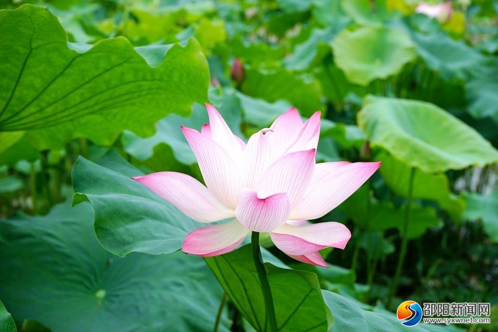 邵阳新闻网6月24日讯(记者 何杰锋)6月24日,走进新邵白水洞景区的百亩荷花基地,一望无际的荷塘里,荷花摇曳绽放,美不胜收,吸引不少游客前去观赏拍照。
