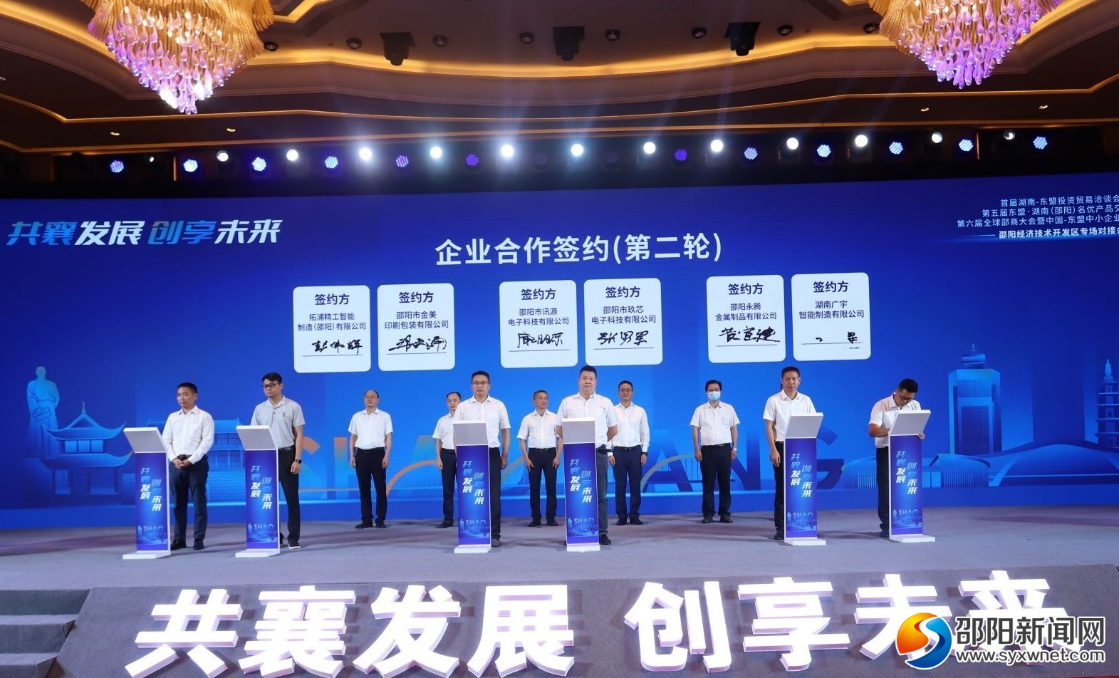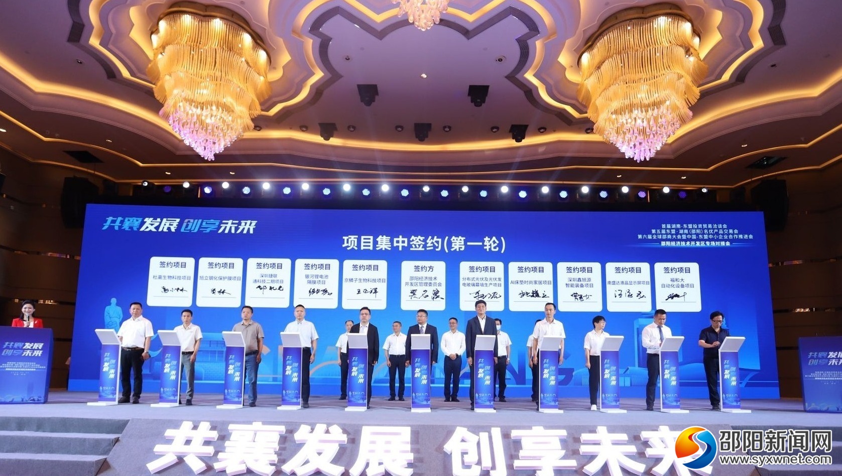 对接会上,举行了招商项目集中签约。邵阳经济技术开发区与一批企业签订19个合作项目,总投资额50亿元。其中,投资10亿元以上项目1个,投资5亿元以上项目1个,项目涵盖显示功能材料加工、先进机械装备制造、智能制造、生物医药等领域。
