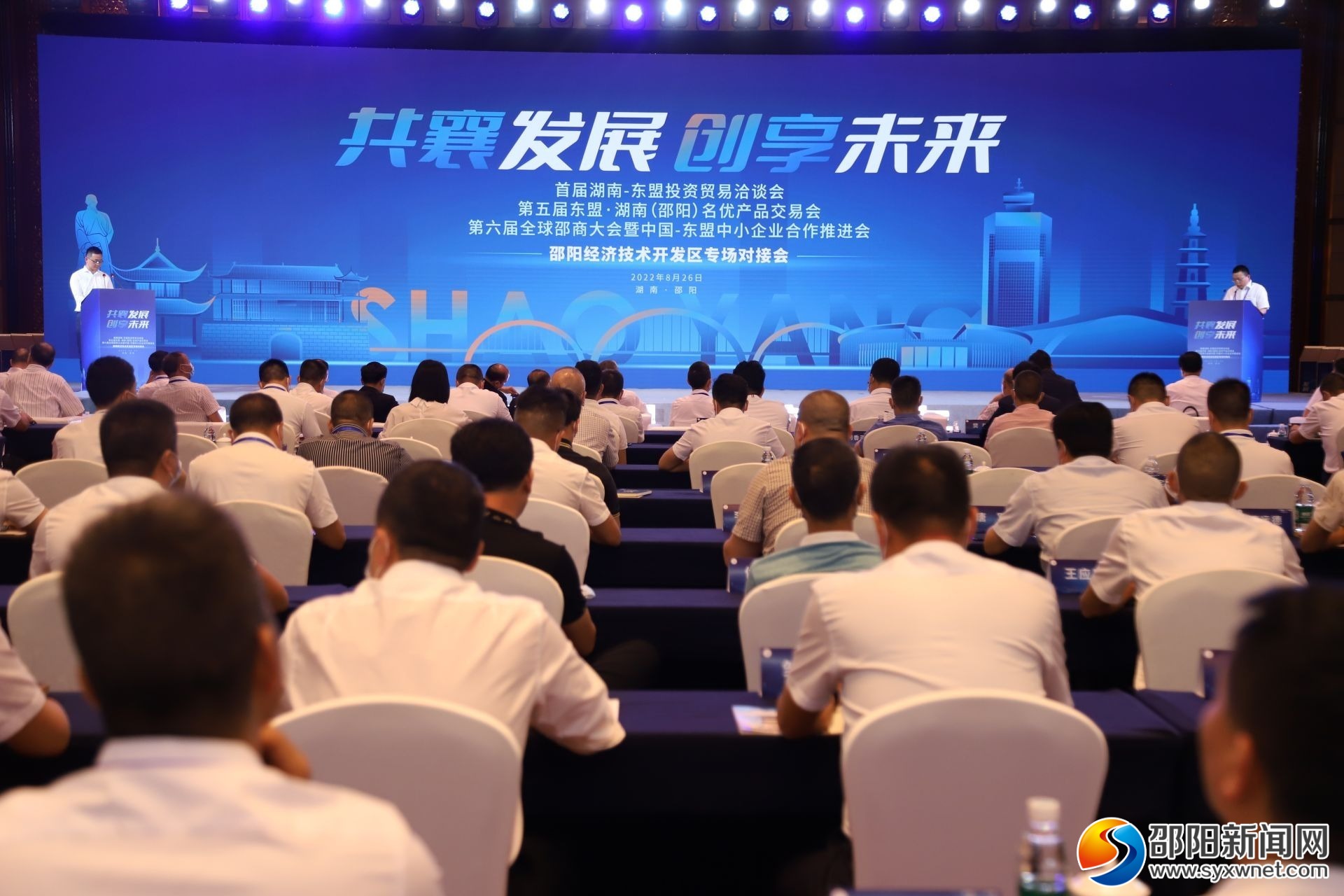 邵阳新闻网8月26日讯(记者 李碧玉 张育溪 通讯员 肖薇) 8月26日,首届湖南-东盟投资贸易洽谈会、第五届东盟·湖南(邵阳)名优产品交易会、第六届全球邵商大会暨中国-东盟中小企业合作推进会邵阳经济技术开发区专场对接会召开。市委常委、常务副市长王永红出席并见证签约。副市长、邵阳经济技术开发区党工委书记刘亚亮主持。