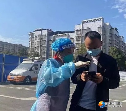 面对疫情,双清区博文小学教师刘芙蓉于10月17日积极响应团市委的号召逆行出征,到大祥区邵州汽车站黄码核酸采样点参加志愿服务。