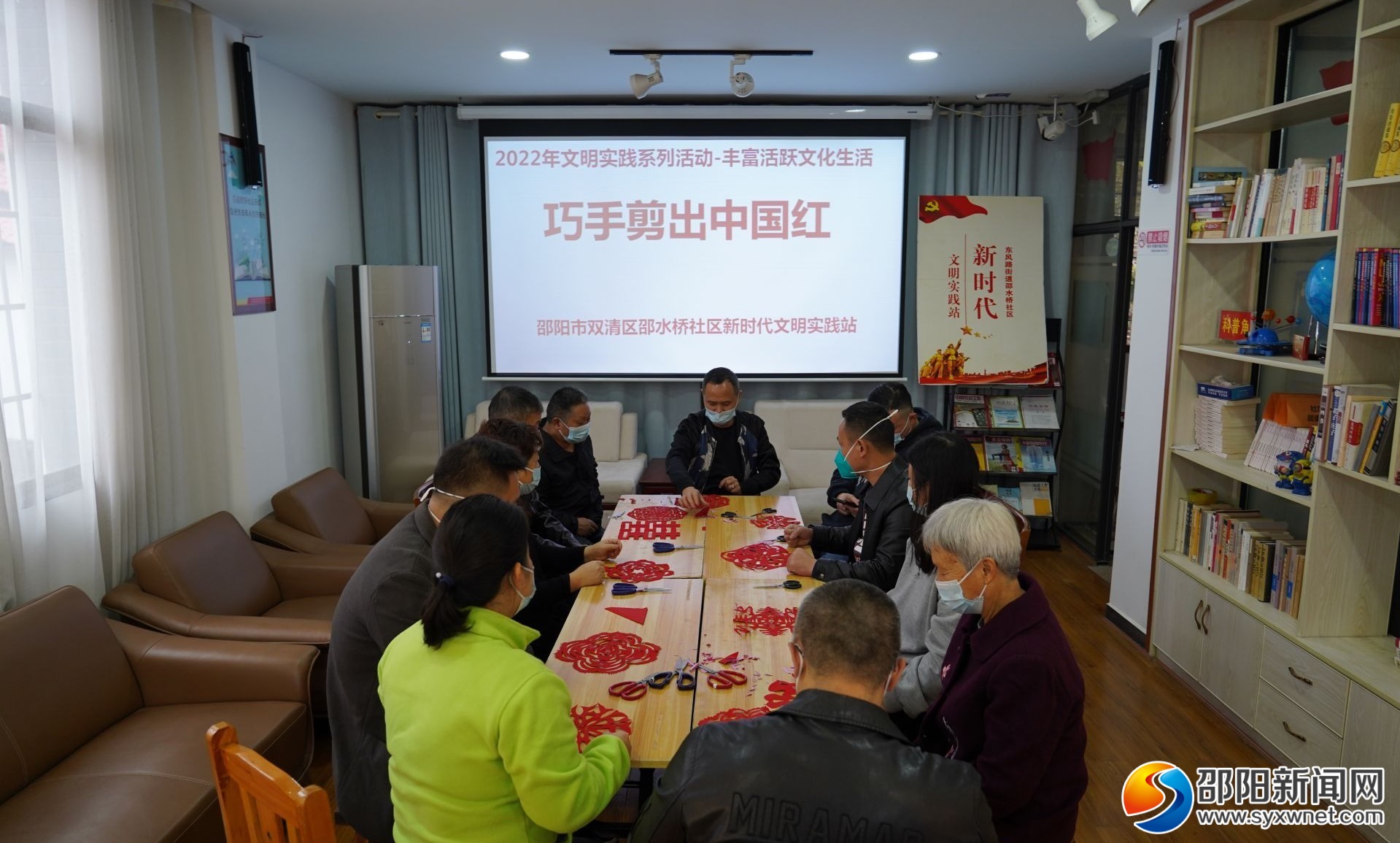 邵阳新闻网11月25日讯(记者 晏彬彬 刘广)为丰富辖区居民文化生活,增进邻里关系,提高文明城市创建知晓率,11月25日,双清区东风路街道邵水桥社区举办助力文明城市创建“巧手剪出中国红”文明实践活动。