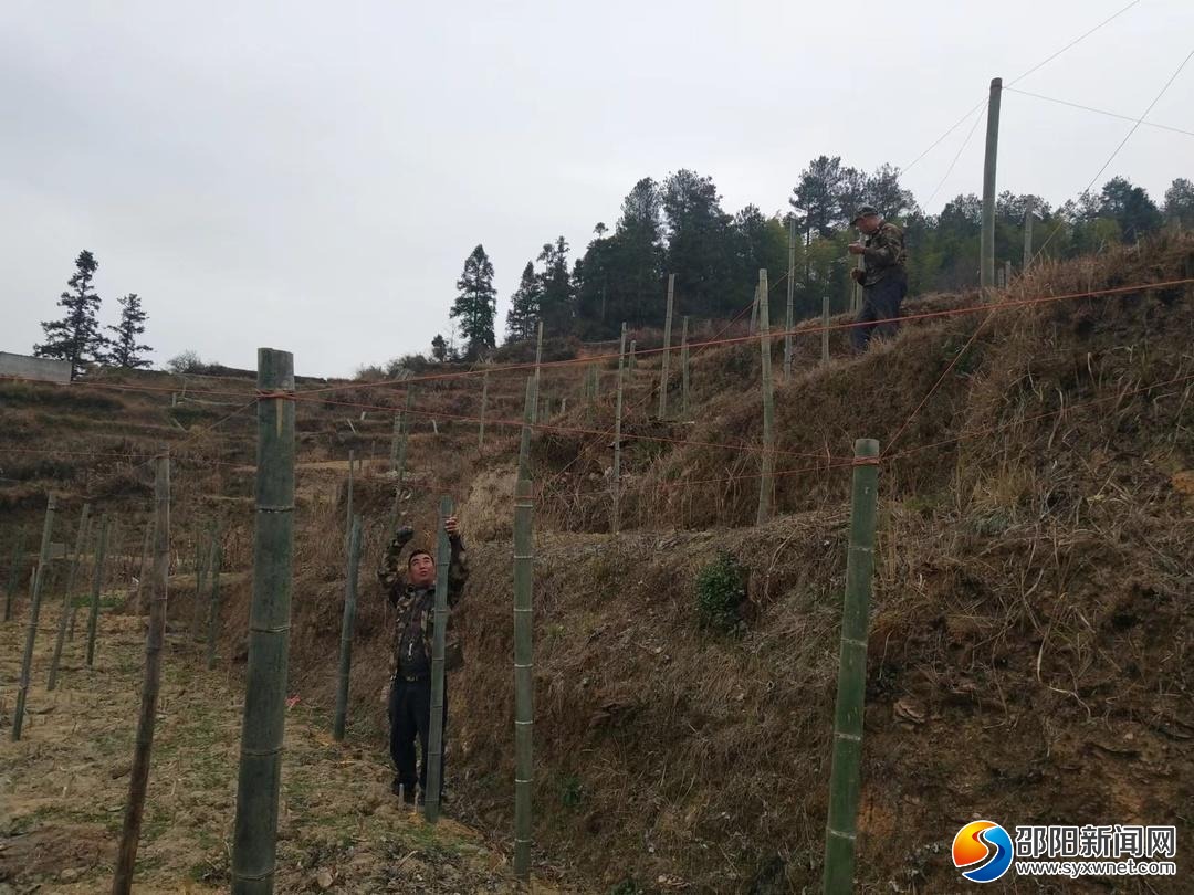 邵阳新闻网2月7日讯(通讯员 胡佐坤)2月2日,在城步白毛坪镇胜利村大桥对面的梯田上,当地群众正在有序地忙碌着,有的在用机械打孔、有的安装竹桩、有的在拉绳捆扎、有的在扛运竹子……这是该村正在搭建罗汉果基地棚桇。