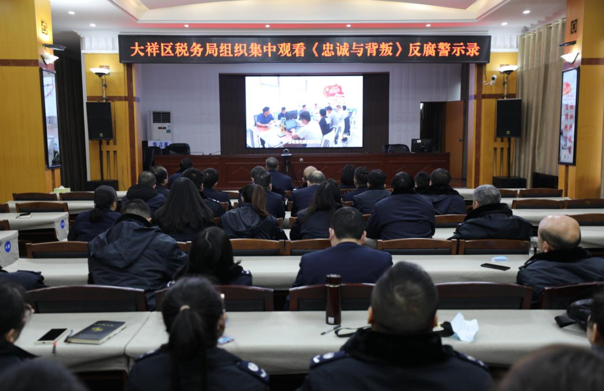 邵阳新闻网2月10日讯(通讯员 贺颂翔 王龙梅) 为全面落实党风廉政建设主体责任,筑牢拒腐防变思想防线,近日,国家税务总局邵阳市大祥区税务局开设了新年廉政第一课,组织全体干部职工分两个办公区会场观看湖南省纪委拍摄的反腐警示教育片《忠诚与背叛》,以典型案例警示干部职工引以为戒、防微杜渐。
