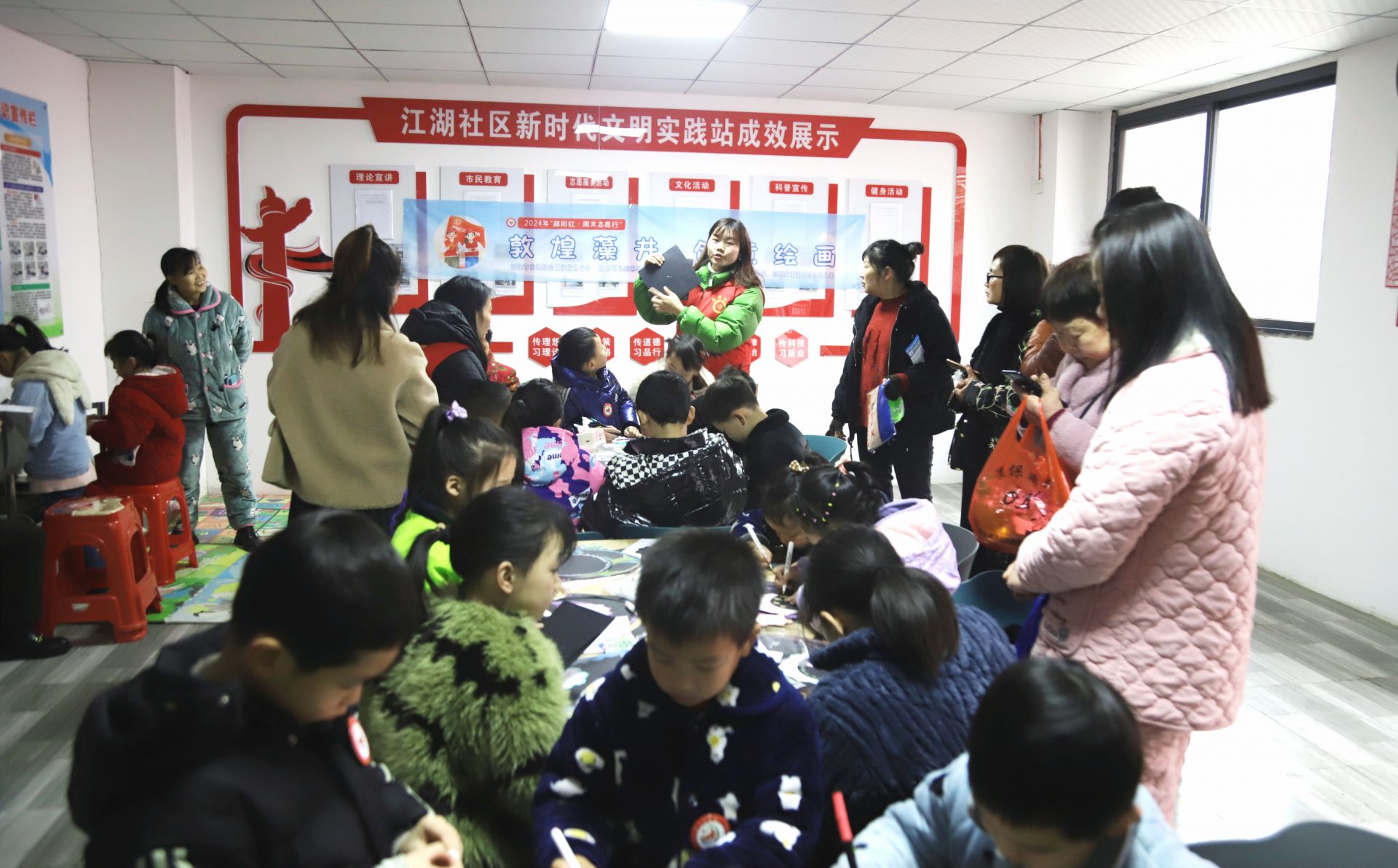 现场,志愿者还组织居民参与“趣味投沙包,乐享邻里情”“垃圾分一分,环境美十分”“敦煌藻井 创意绘画”活动,寓教于乐。居民们在轻松愉快的氛围中,深刻认识到垃圾分类的重要性并体验了传统的手工艺,为社区居民带来了别样的艺术体验,大家在欣赏美的同时,也感受到了文化的魅力。