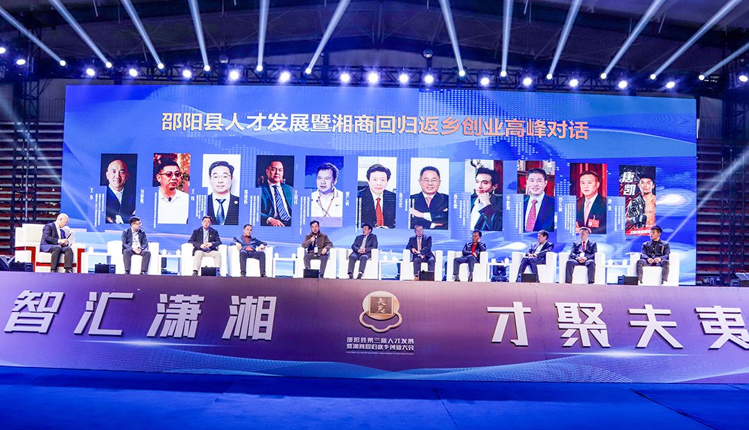 会议期间,邵阳县还举行了人才发展暨湘商回归返乡创业高峰对话。王永、刘黎明、王炜、郑建新、王超祥、黎仁寅、易定宏、唐未德、李惠海、罗长林、唐凯等来自科技、教育、商业、文旅行业的精英们,围绕乡村振兴、产业发展、人才引进等方面进行了探讨交流,为邵阳县经济社会高质量发展建言献策。