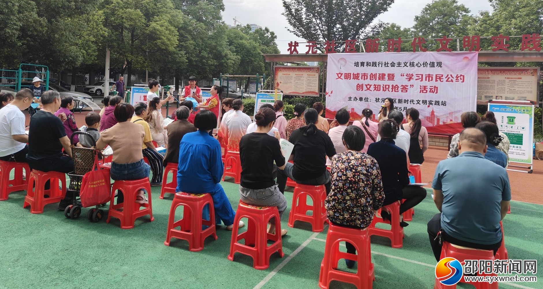 邵阳新闻网5月22日讯(通讯员 陈友龙)5月20日,北塔区状元洲街道状元社区在新时代文明实践广场组织开展文明城市创建暨“学习市民公约 创文知识抢答”活动。