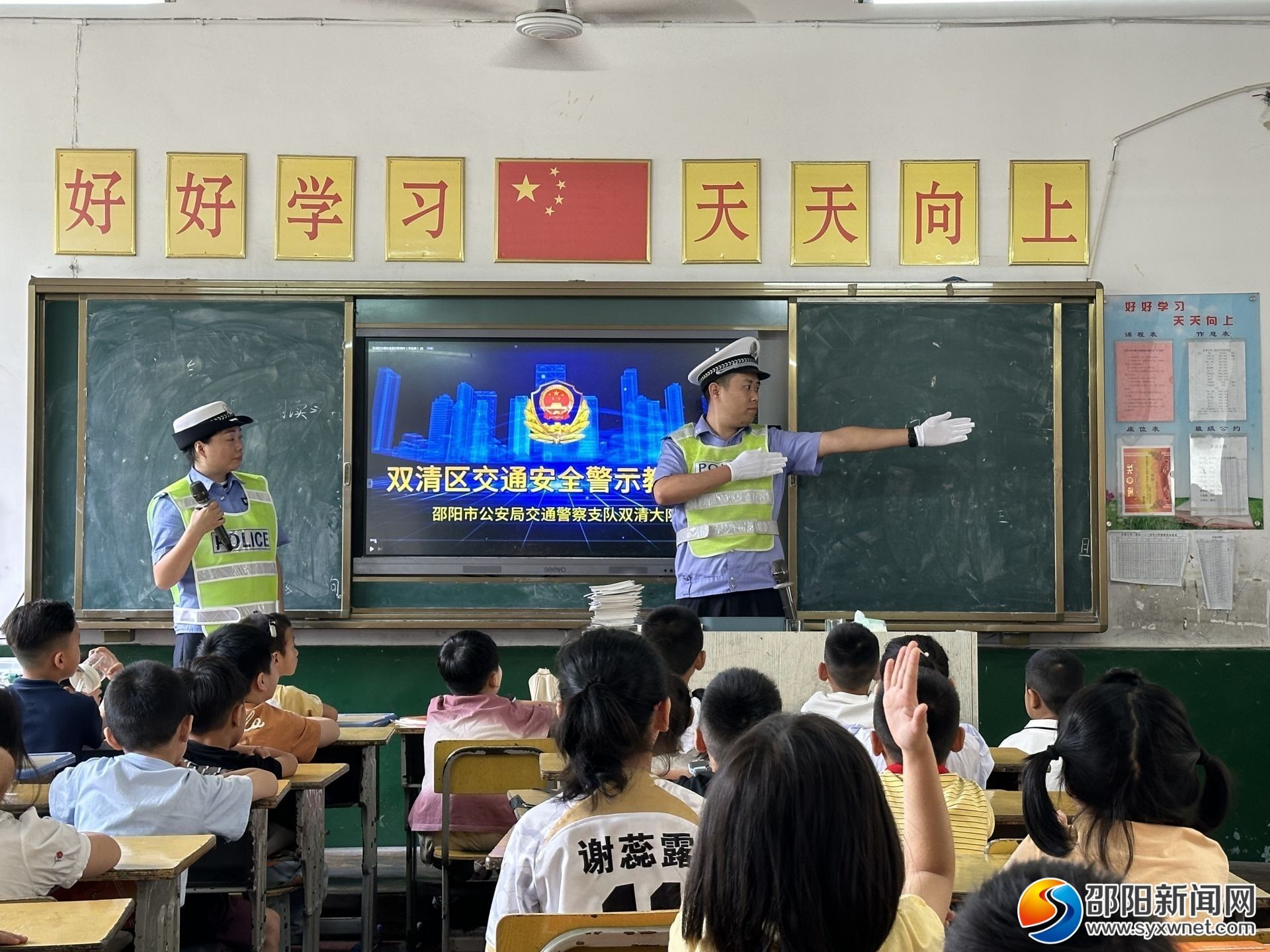 邵阳新闻网7月3日讯(通讯员 孙静 张春花)“同学们,明天我们的暑假生活就要正式开始了,今天交警阿姨来给同学们上暑假前‘最后一课’——交通安全课。”暑期将至,为增强同学们的交通法治观念和交通安全意识,确保学生的出行安全,7月2日,双清交警大队走进辖区东塔小学为同学们上了一堂丰富多彩、形式多样的交通安全教育课。