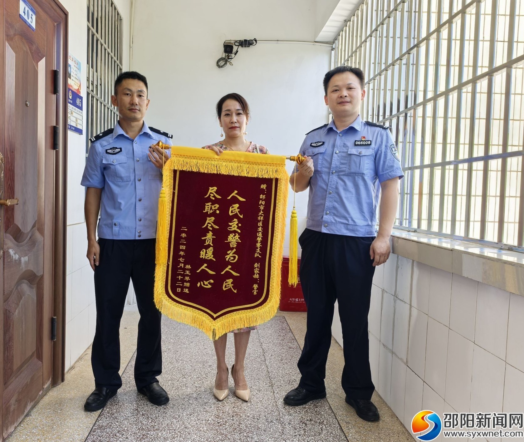 邵阳新闻网7月23日讯(通讯员 周华)7月23日上午,林女士手捧“人民交警为人民 尽职尽责暖人心”的锦旗来到大祥交警大队,对大祥交警尽职尽责和一心为民的工作态度表示感谢。