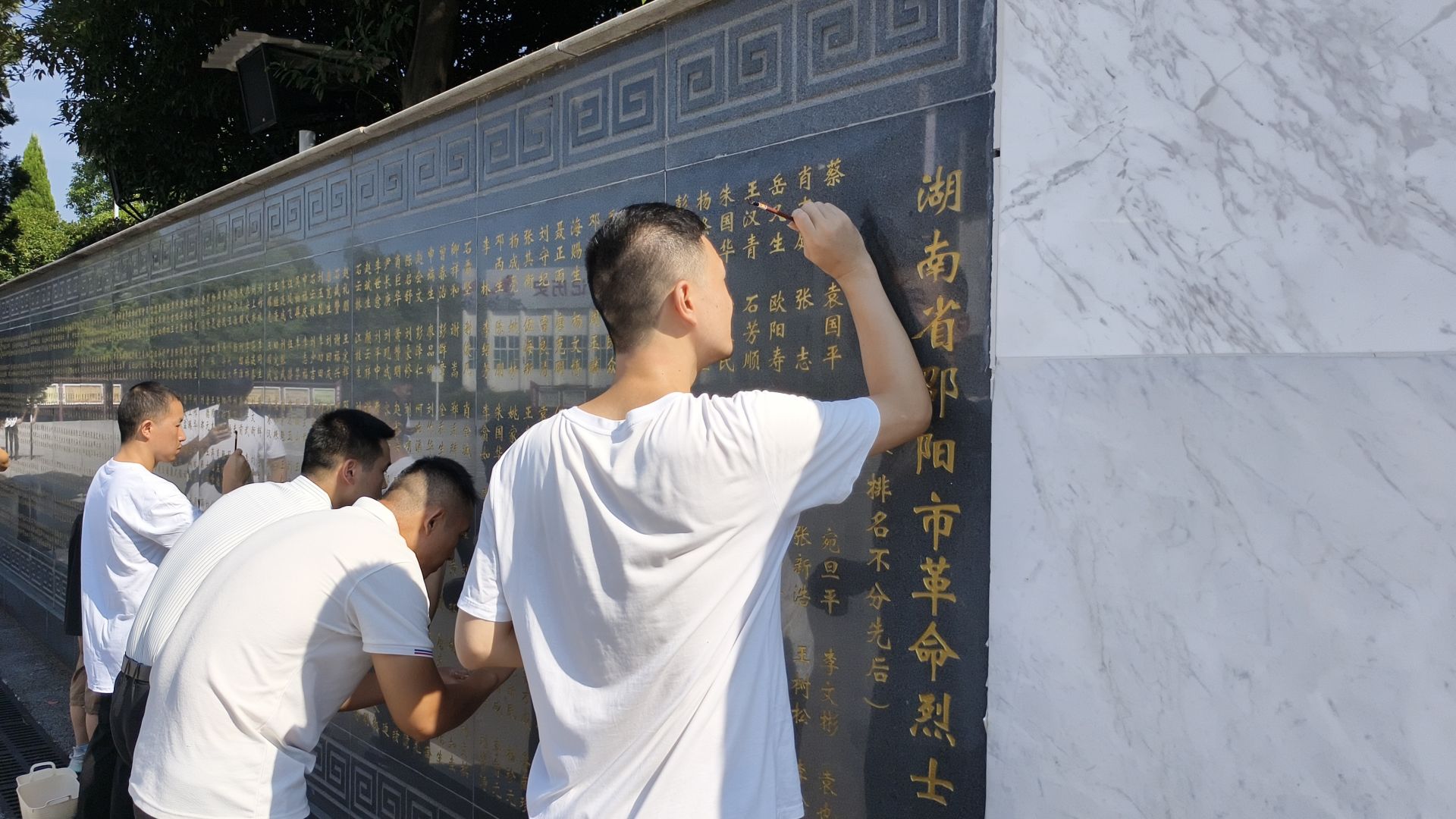 烈士纪念园内,松柏苍翠,丰碑耸立。参与活动的人们身着整齐服装,怀揣崇敬之情,手持毛笔和金漆,认真地为烈士墓碑上的铭文描金。一笔一划,庄重而细致,仿佛在与烈士们进行一场超越时空的交流。
