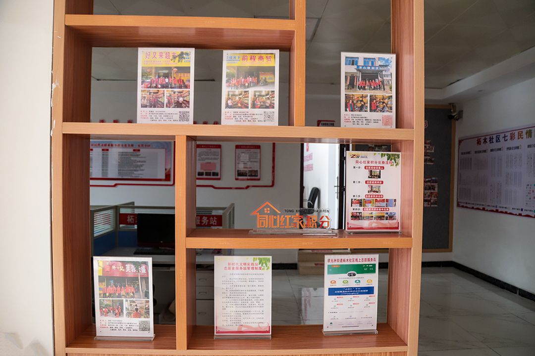 在柘木社区,像前程商贸这样的超市共有三家,超市的货架上,除了琳琅满目的商品,还有供参与志愿服务的居民们兑换的毛巾、抽纸、大米、保温杯等各类奖品,小小超市成为居民身边的“文明加油站”。