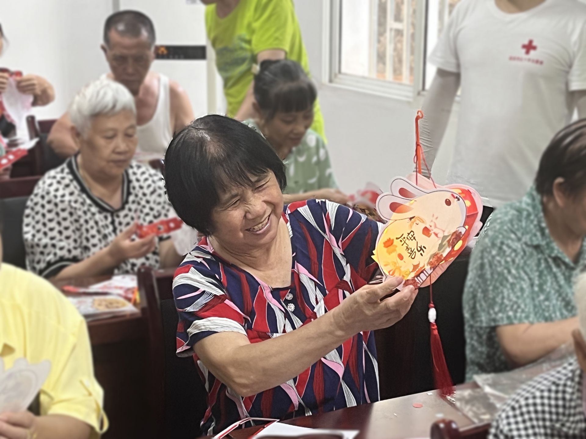 活动现场热闹非凡,工作人员组织社区居民们现场体验了DIY灯笼制作、中秋节主题猜谜语等丰富多彩的互动活动。志愿者们为大家发放了手工材料包,并耐心指导大家如何摆灯架、连灯饰、挂灯线。现场弥漫着浓浓的节日气息,一个个寓意着“花好月圆”“平安喜乐”等美好祝愿的灯笼在居民们的巧手下呈现出来。