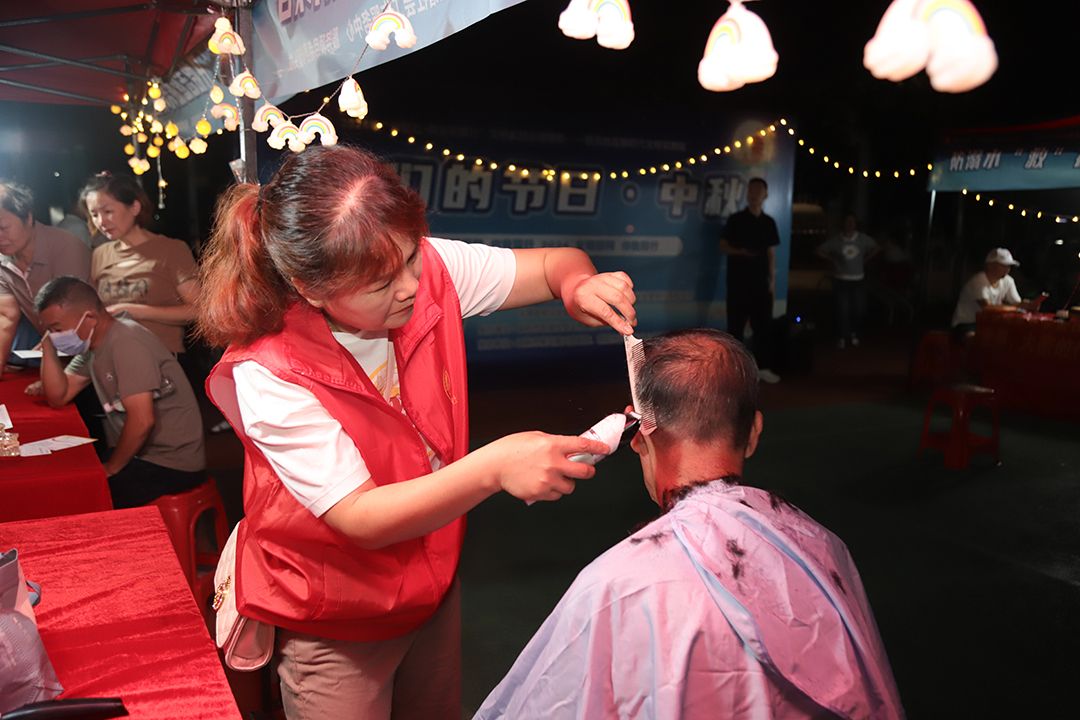 在“义”起行动“剪”出精彩区域,理发师们用巧手为居民们打造新发型,传递着社区的关怀与温暖,让居民们感受到了节日的幸福。