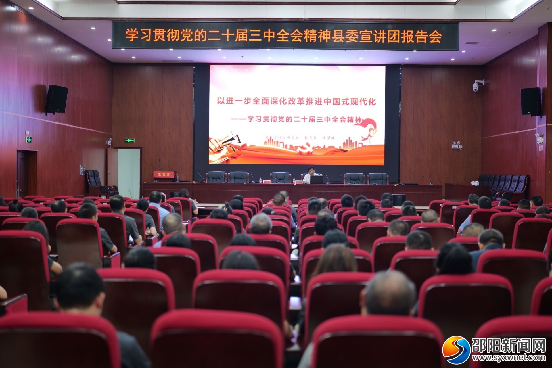 邵阳新闻网9月28日讯(通讯员 罗嗣君)9月27日下午,隆回县人民法院举行学习贯彻党的二十届三中全会精神县委宣讲团报告会,邀请县委党校校务委员、教育长唐望庭作专题宣讲报告,该院全体工作人员参加会议。
