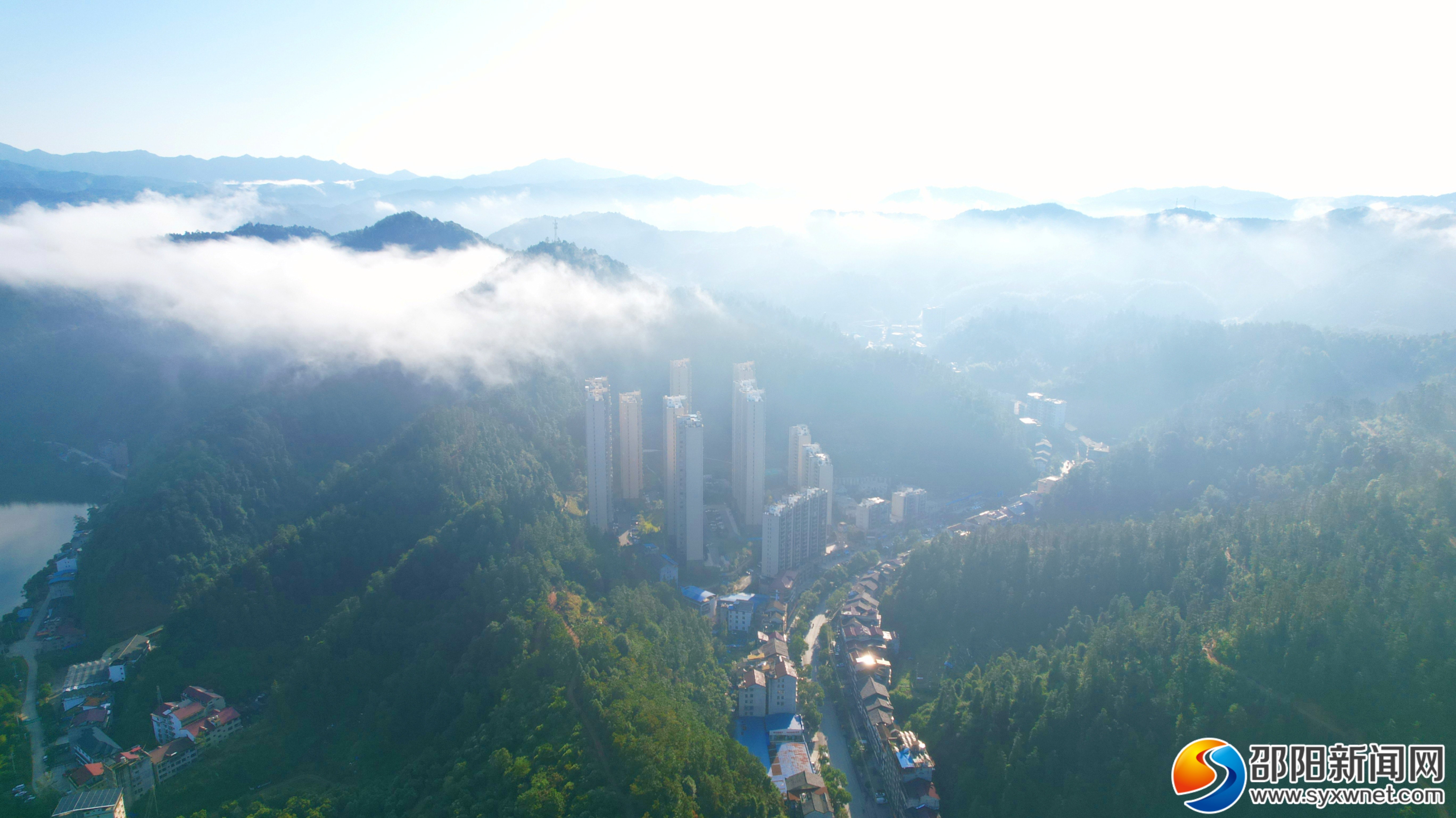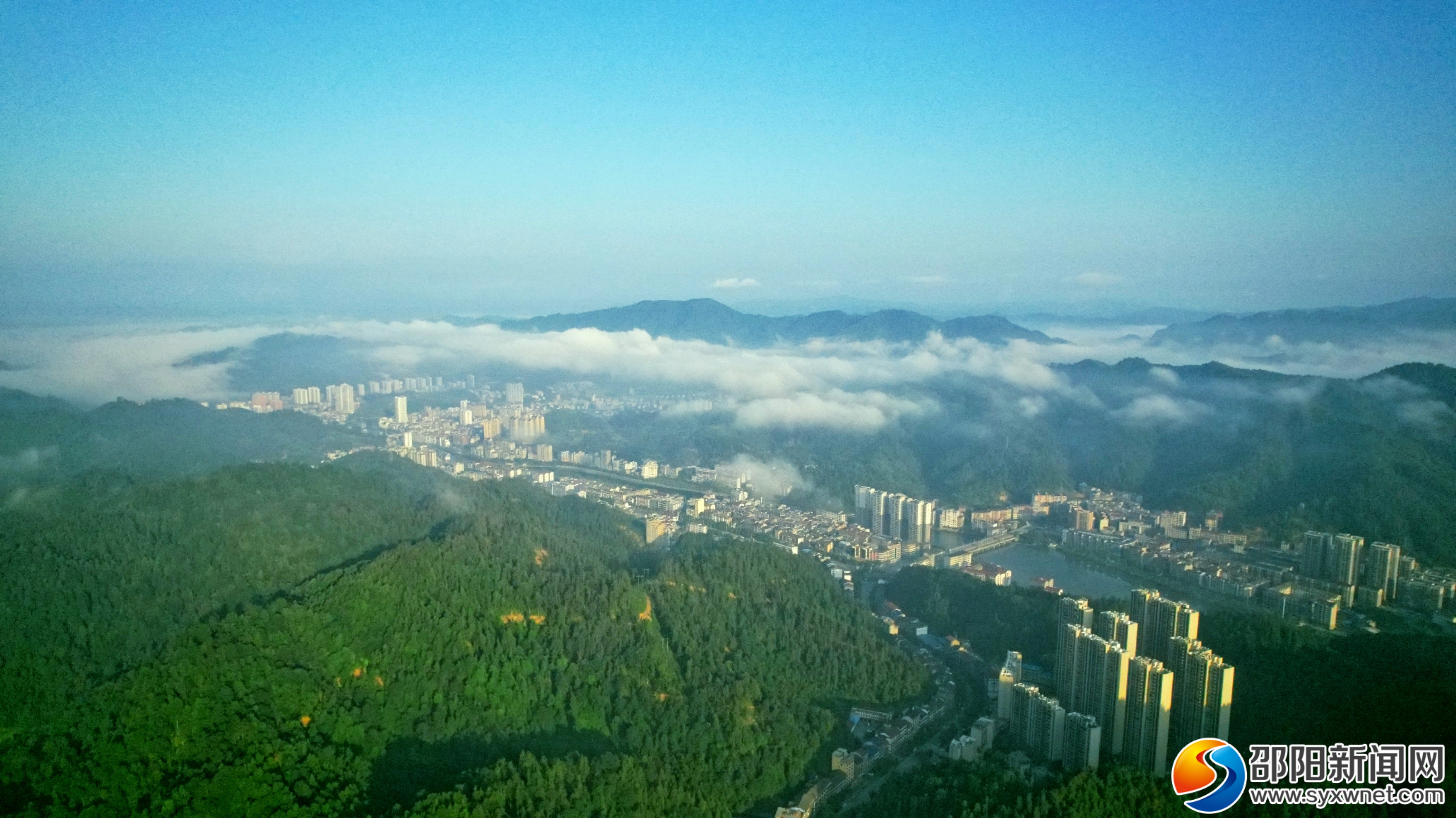 邵阳新闻网10月23日讯(通讯员 唐芳艳 彭超)10月23日清晨,雨后初晴的绥宁县城市上空晨雾弥漫,出现美丽壮观的云海奇观。从高空俯瞰城区,高楼、街道、山峦在云海中若隐若现,整个城市都笼罩在云雾缭绕中,仿佛置身于仙境,漫步于云端之上,一切都“仙气飘飘”。在云雾的衬托下,城市楼阁在云雾中若隐若现,如梦如幻,好似“天空之城”,蔚为壮观。