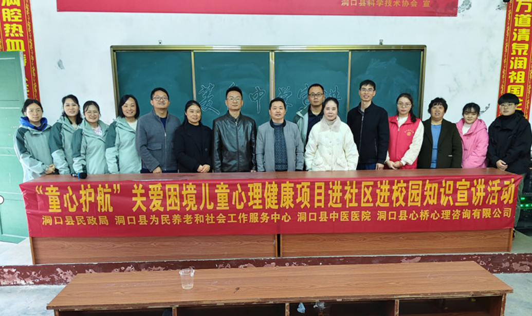 邵阳新闻网11月22日讯(通讯员 张戈 葛柳力)11月22日,洞口县民政局联合洞口县为民养老和社会工作服务中心、洞口县中医医院、洞口县心桥心理咨询公司,组织社工和志愿者在岩山镇菱角中学开展了“童心护航”关爱困境儿童心理健康项目进社区、进校园知识宣讲活动。